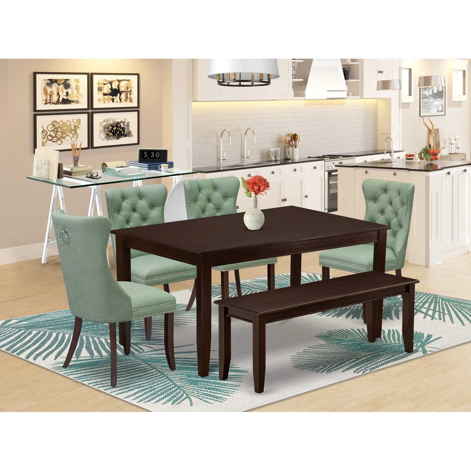 Rectangle Dining Table Set with 4 Chairs and Bench - Kitchen Table Set, Mahogany Finish