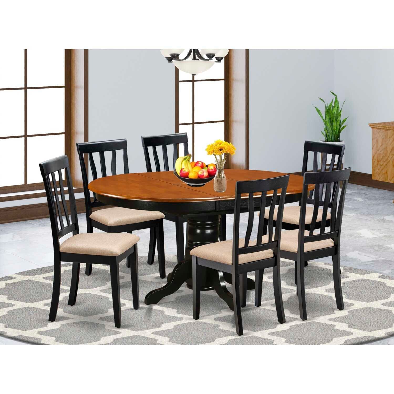 7-Piece Oval Black Finish Solid Wood Top Dining Table with 6 Chairs with