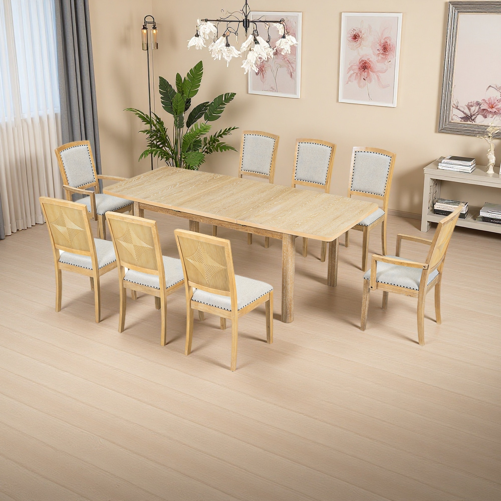 9-Piece Rustic Extendable Dining Set, 84" Table with 24" Leaf, 6 Upholstered Armless Chairs & 2 Padded Armchairs