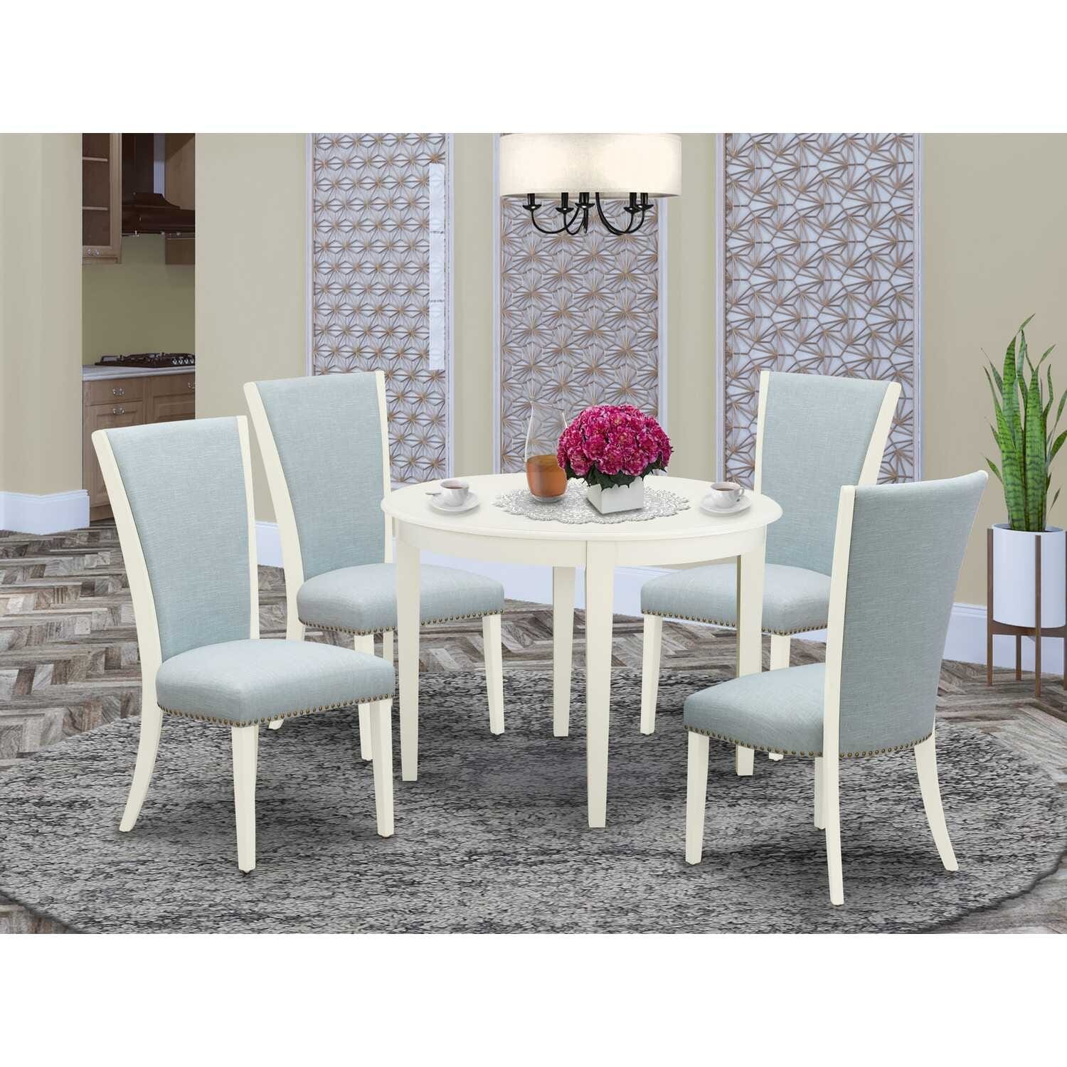 5-Piece Linen white Solid Wood Top - Round Dining Room Set - Seats-4