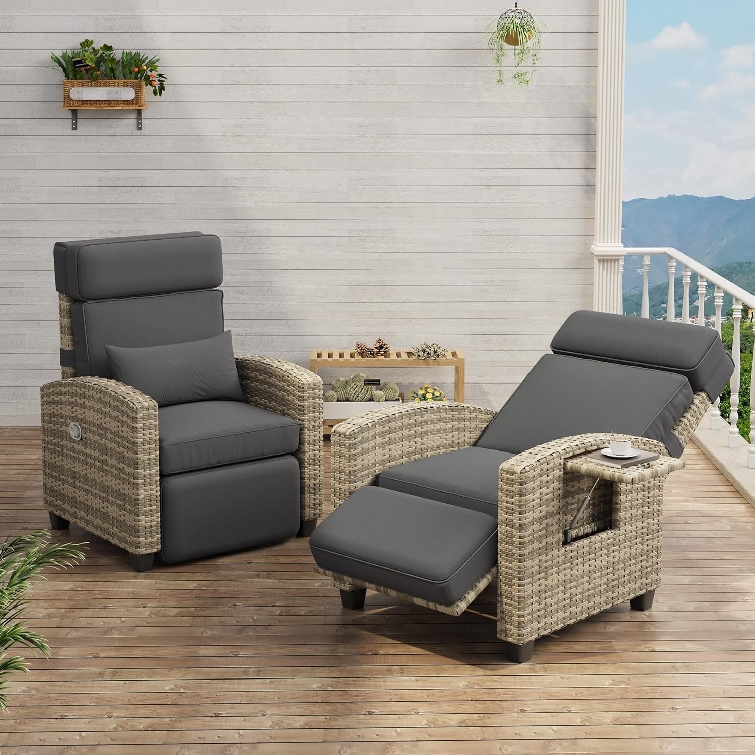 Adjustable Patio Lounge Chair, Outdoor Reclining Chaise with Side Table & Cushion