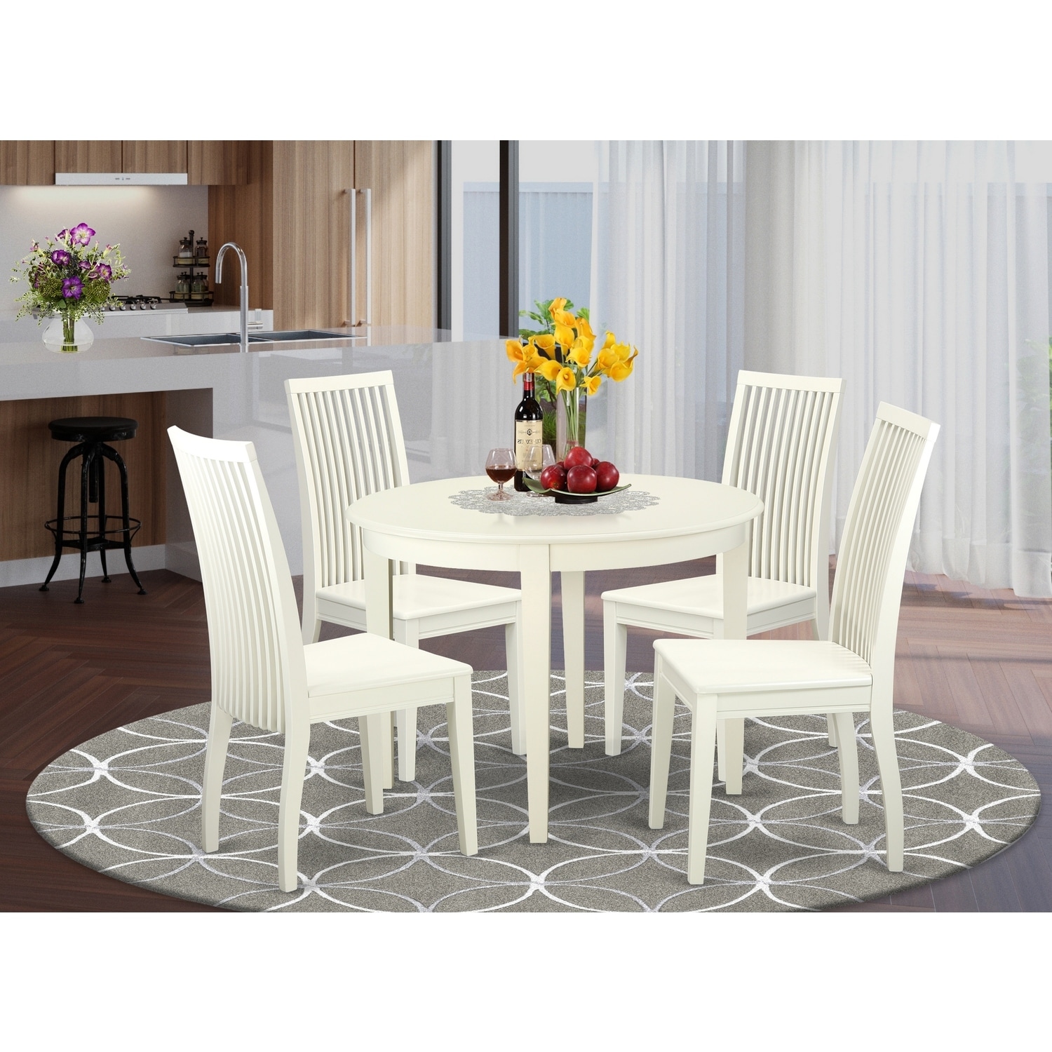 HomeStock 5-Piece Linen White Finish Solid Wood Top Dining Table with 4 Chairs