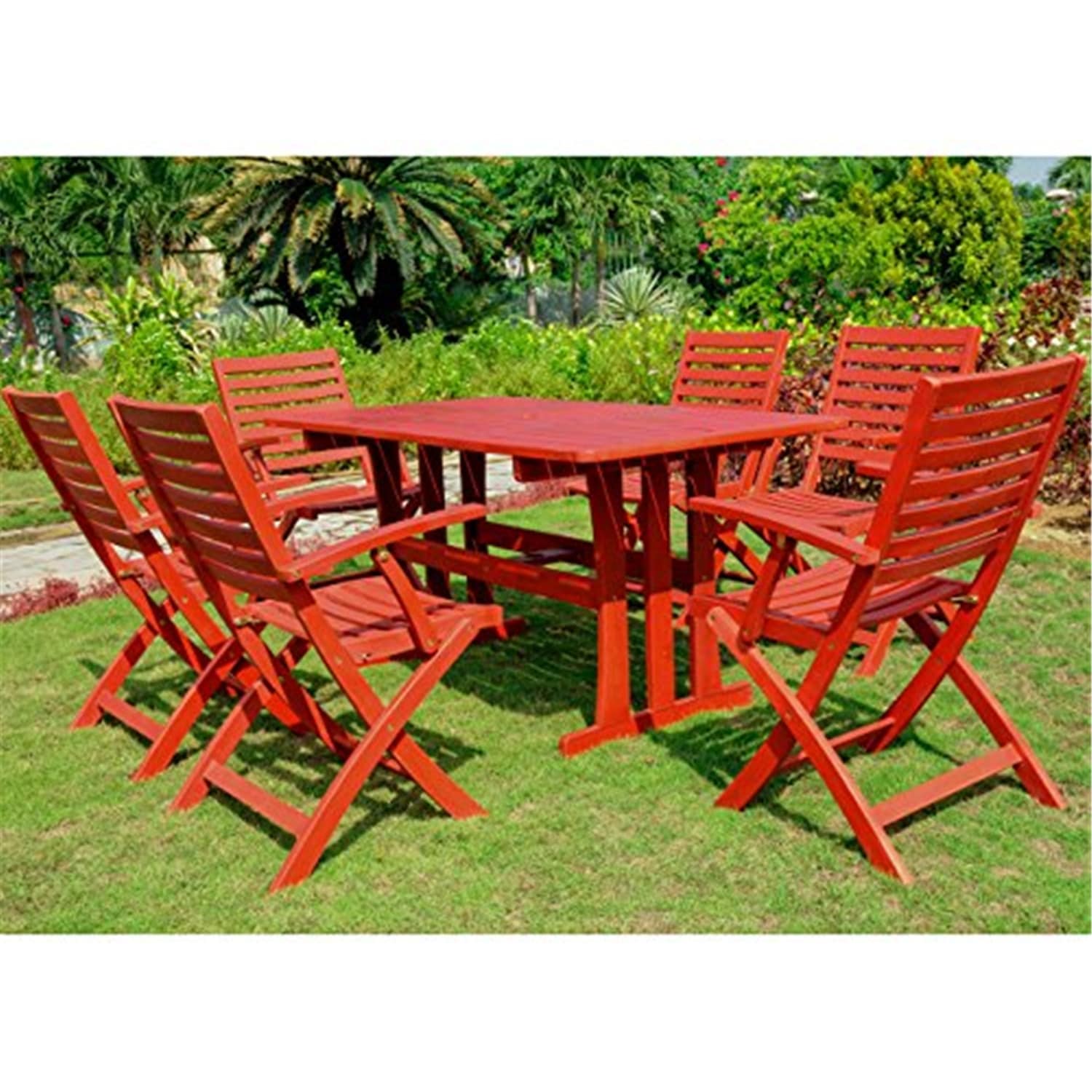 Amazonia FSC Wood 7pc Outdoor Patio Dining Set with Lazy Susan - 7 Piece - 7 Piece