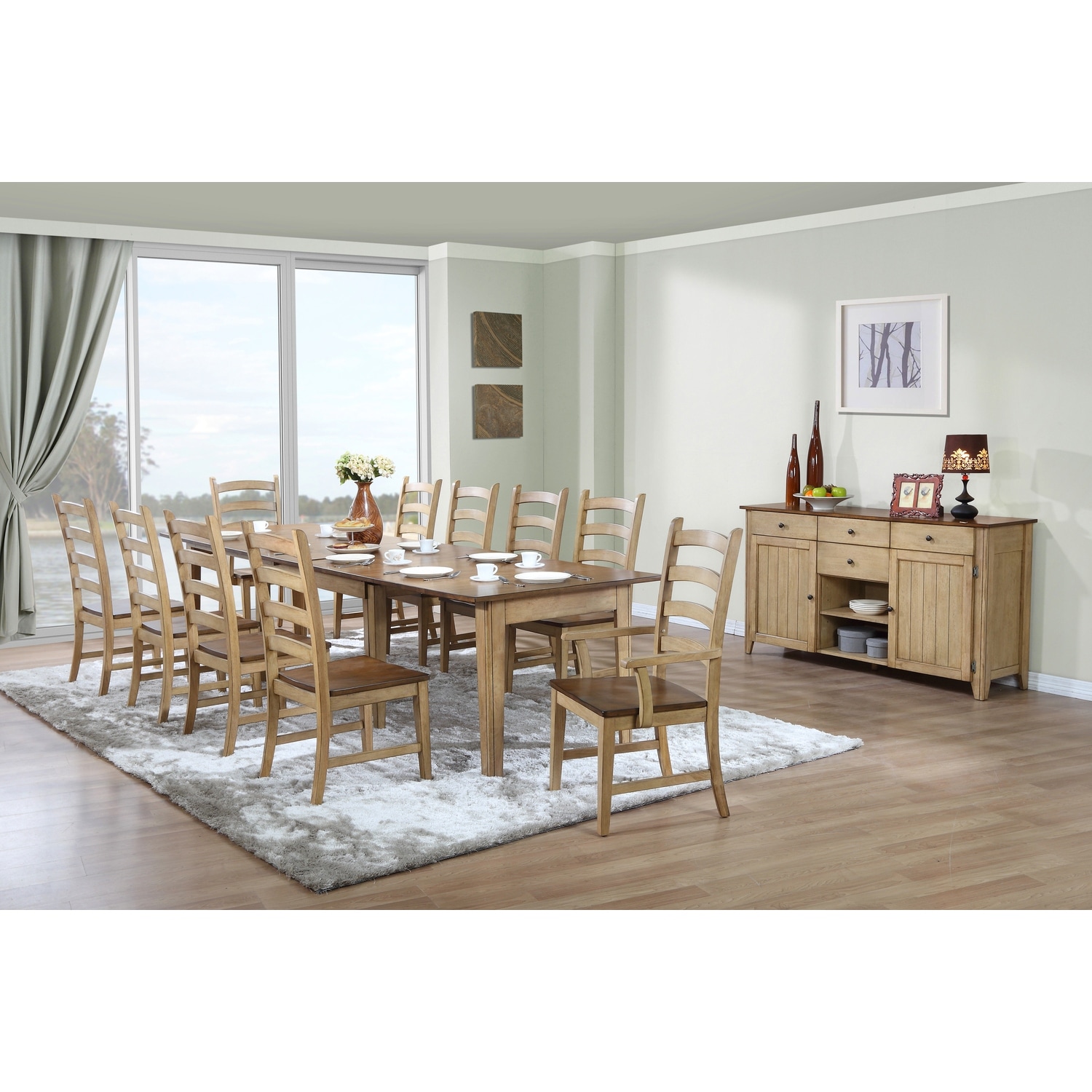 Extendable Dining Set 12 Piece Rectangular Table & Chairs - Large Dining Room Furniture