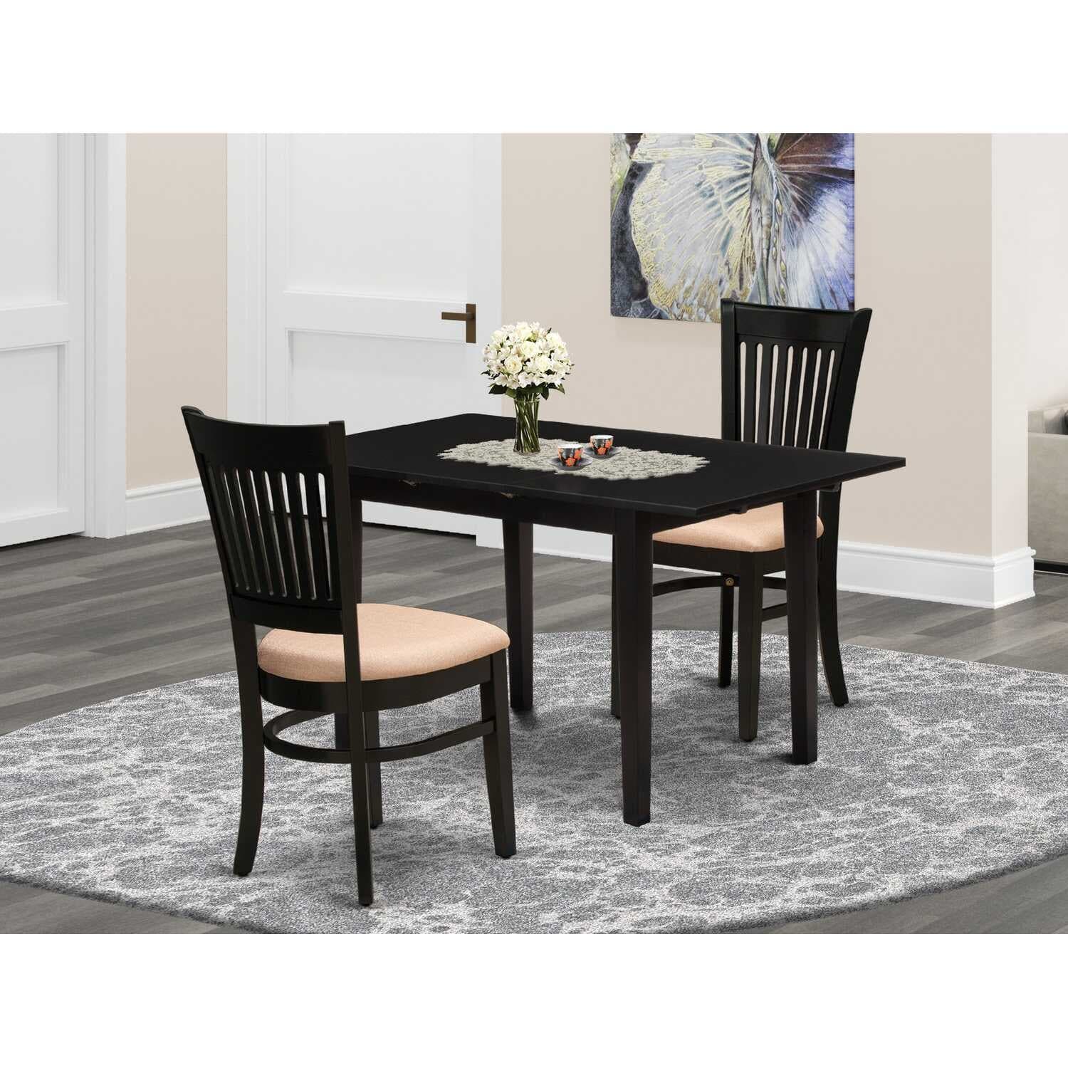 HomeStock 3-Pc Black Finish Rectangular Solid Wood Top With Butterfly Leaf Dining Table Set