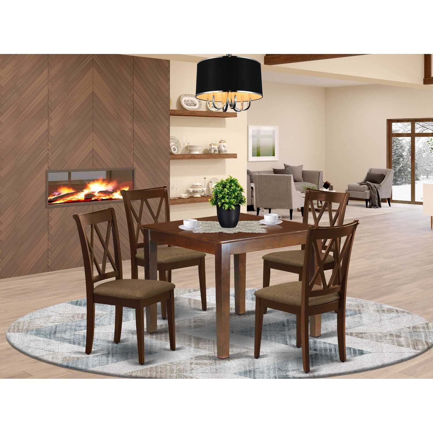 HomeStock 5-Pc Mahogany Finish Solid Wood Top - Square Dining Room Set - Seats 4