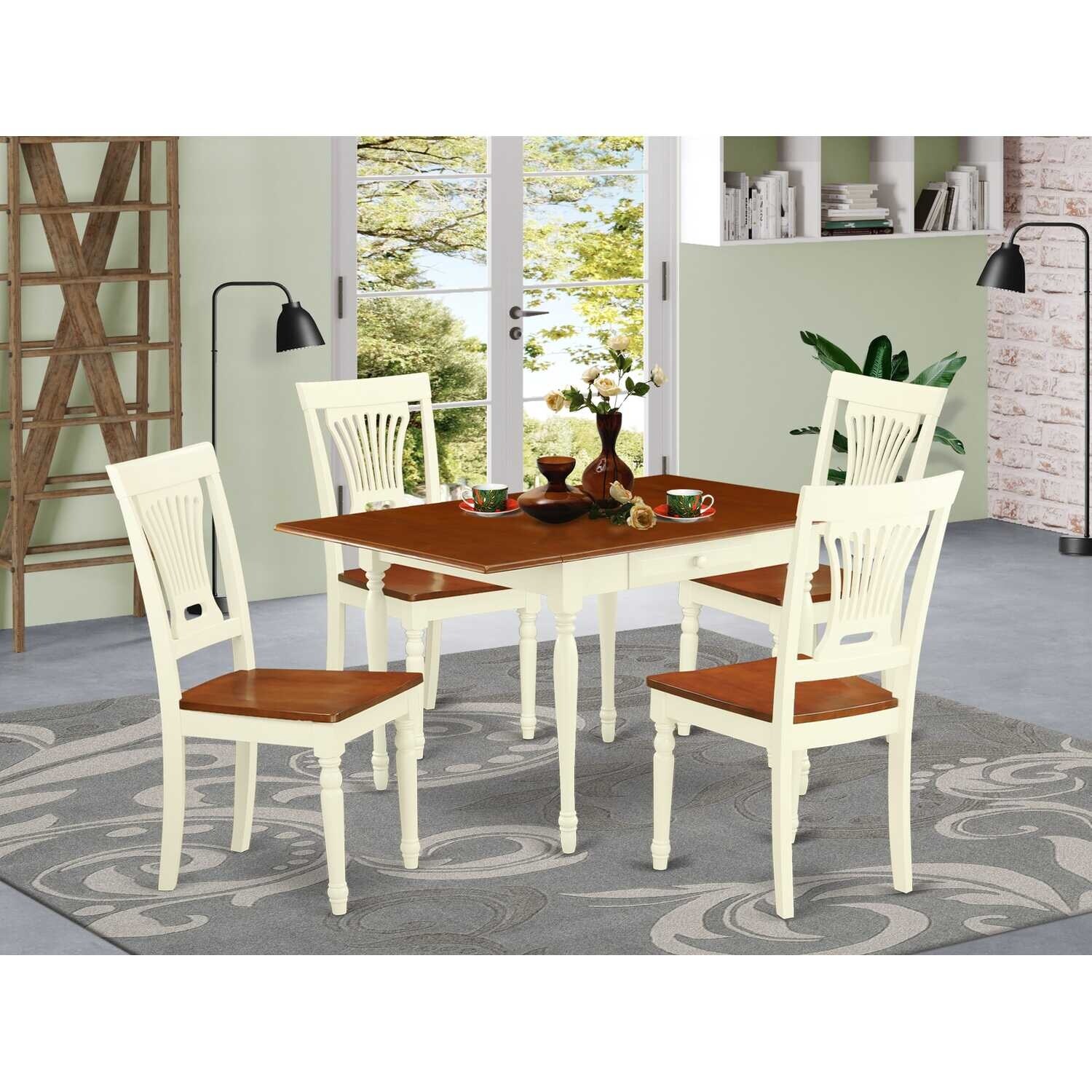 HomeStock 5-Pc Buttermilk and Cherry Solid Wood Top - Dining Room Set with Dropleaf - Seats 4