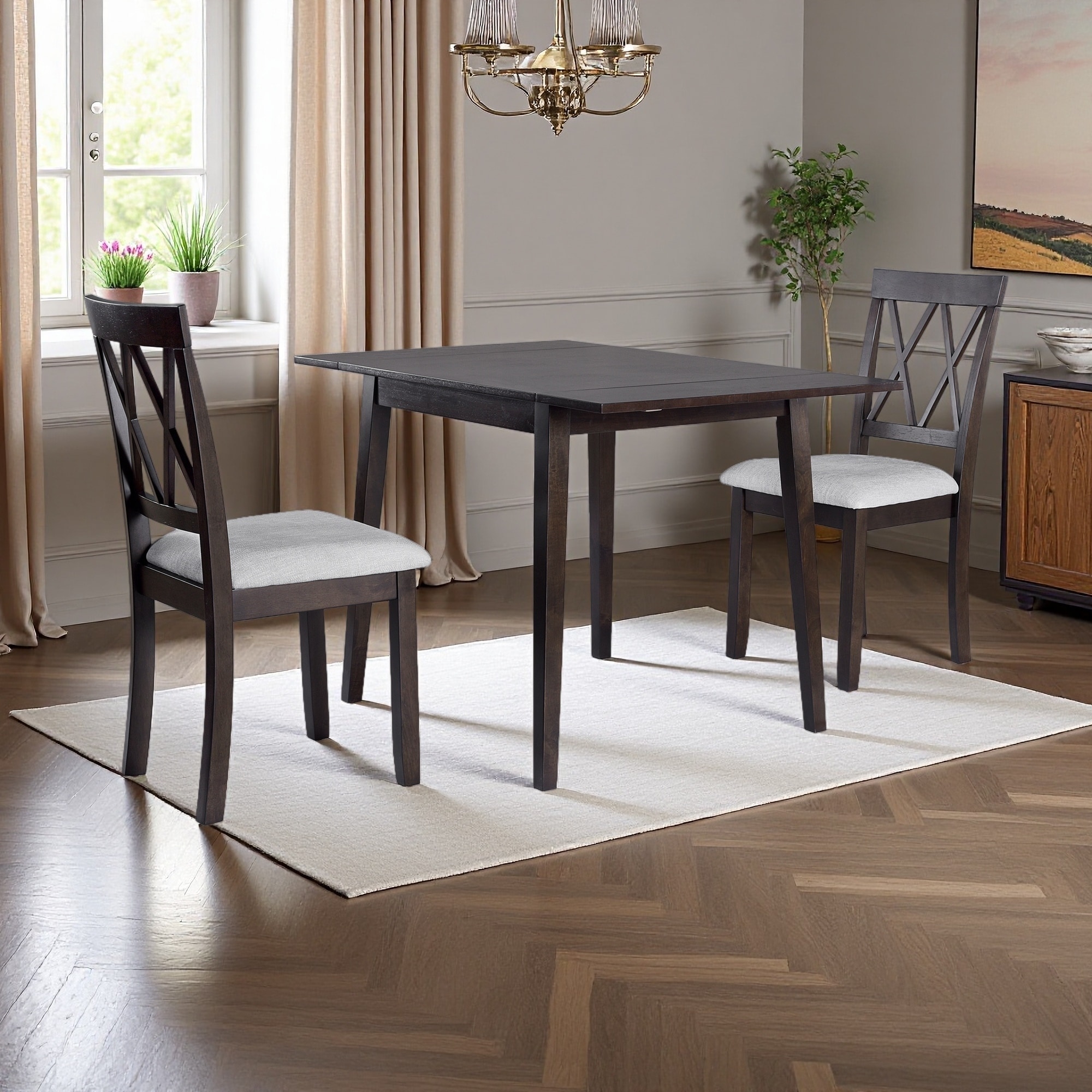 3-Piece Antique Walnut Finish Square Solid Wood Top Dining Table Set