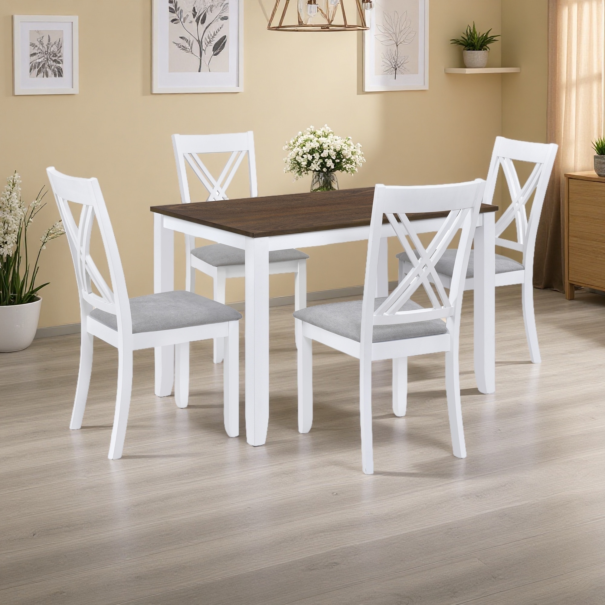 5-Piece Rustic Minimalist Dining Set, Wooden Table with 4 X-Back Chairs, Space-Saving for Small Places