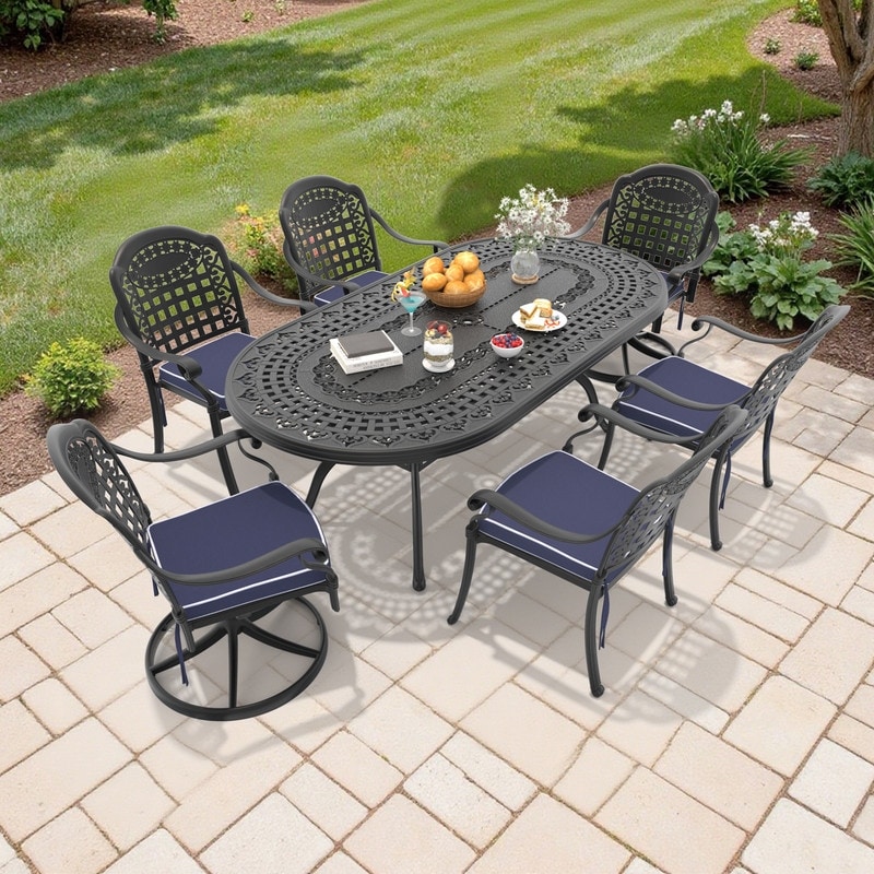 7-Piece Outdoor Dining Set with 1 Table and 6 Chairs, All-Weather Aluminum Outdoor Patio Sets