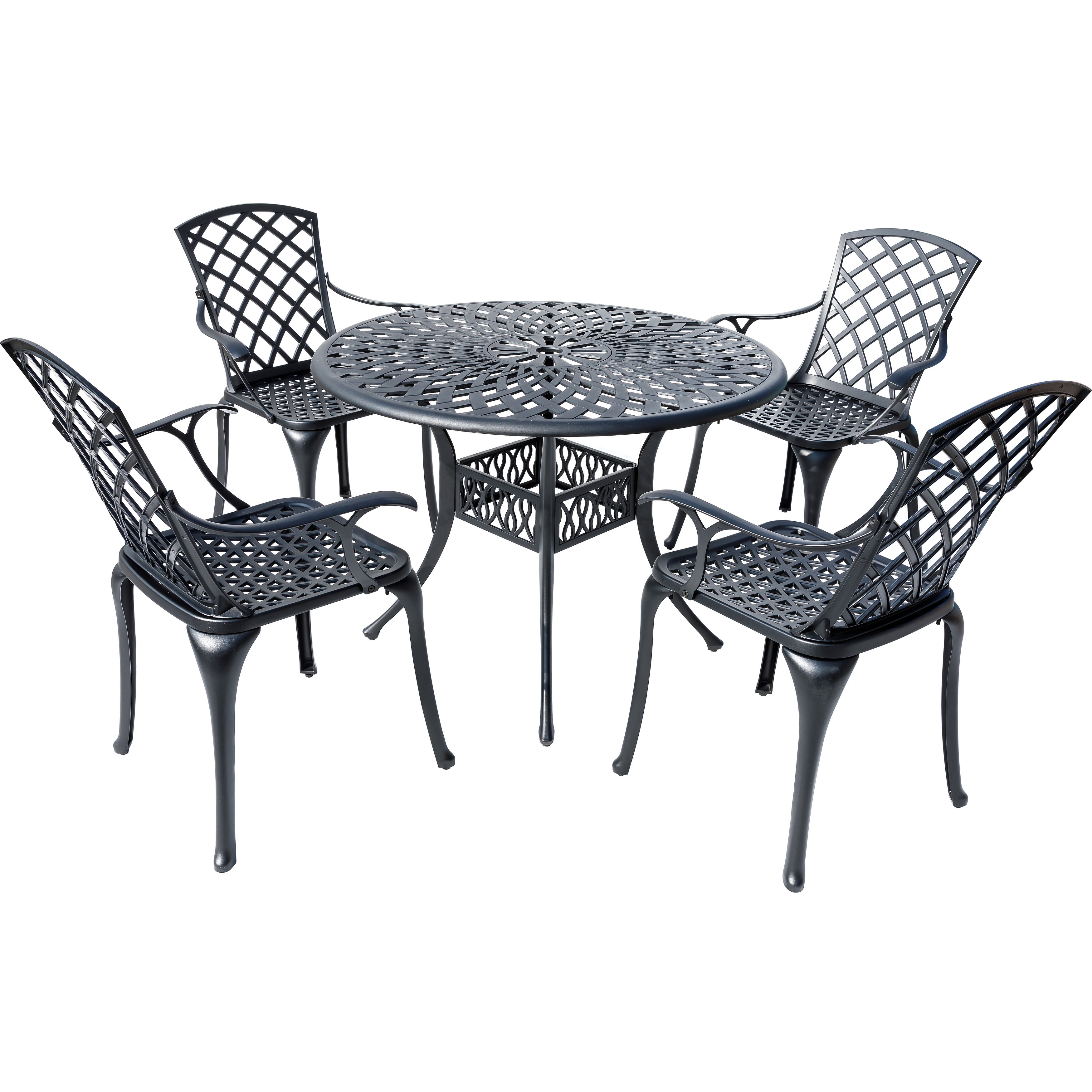 5 Pieces Bistro Dining Set Antique Black/White All-Weather Cast Aluminium Patio Furniture