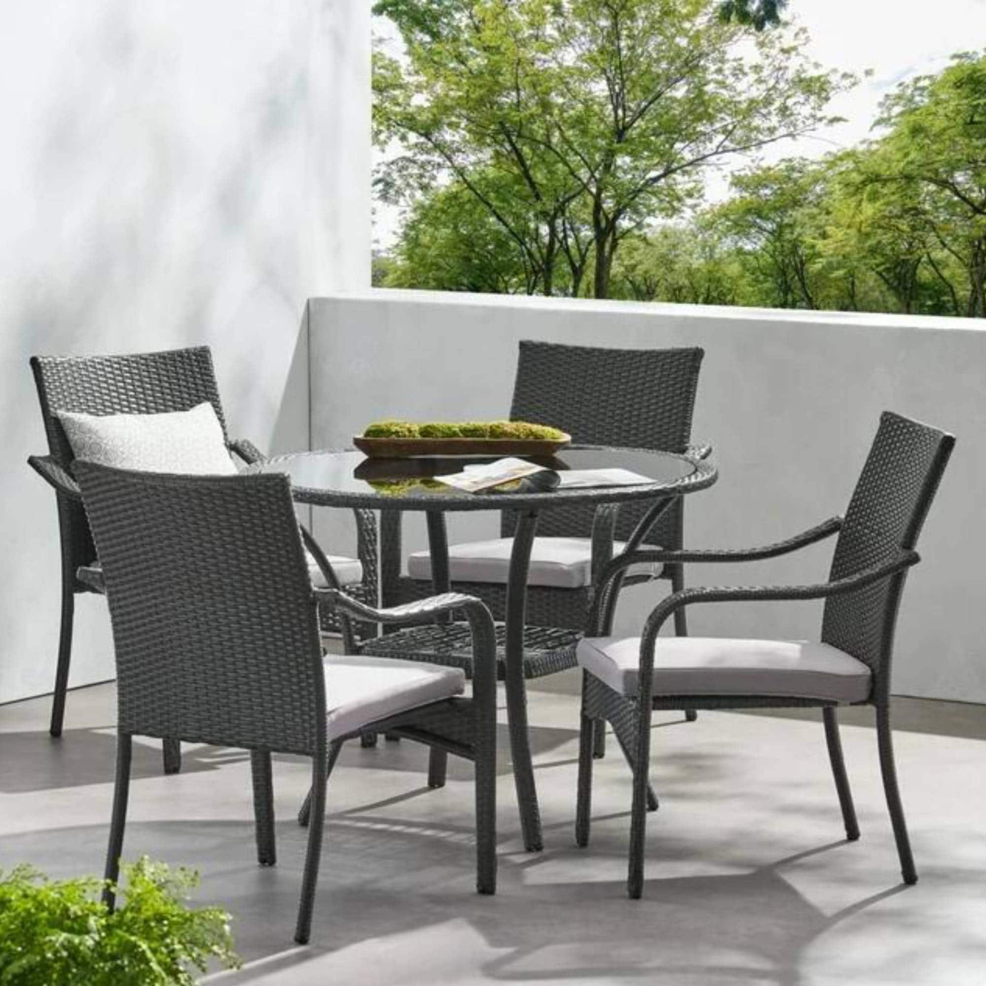 Outdoor Rattan Dining Set with 4 Armchair & Water-Resistant Cushions