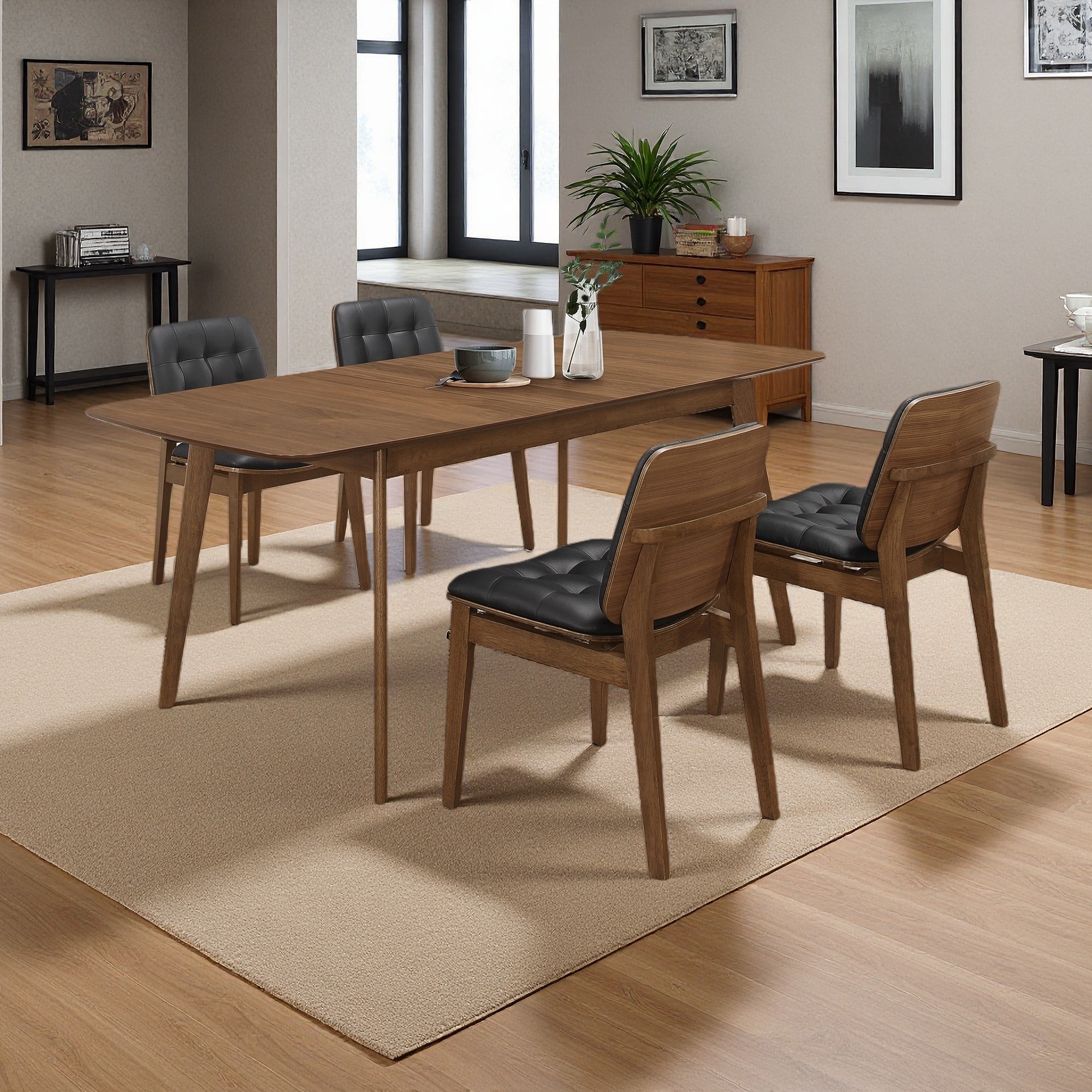 5-Piece Rectangular 59"L Dining Set with Butterfly Leaf & Leatherette Chairs
