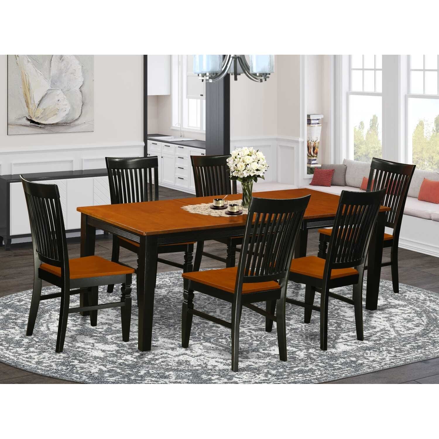 Kitchen Dining Set 7 Piece Table & Chairs Wood Set Black Cherry Finish