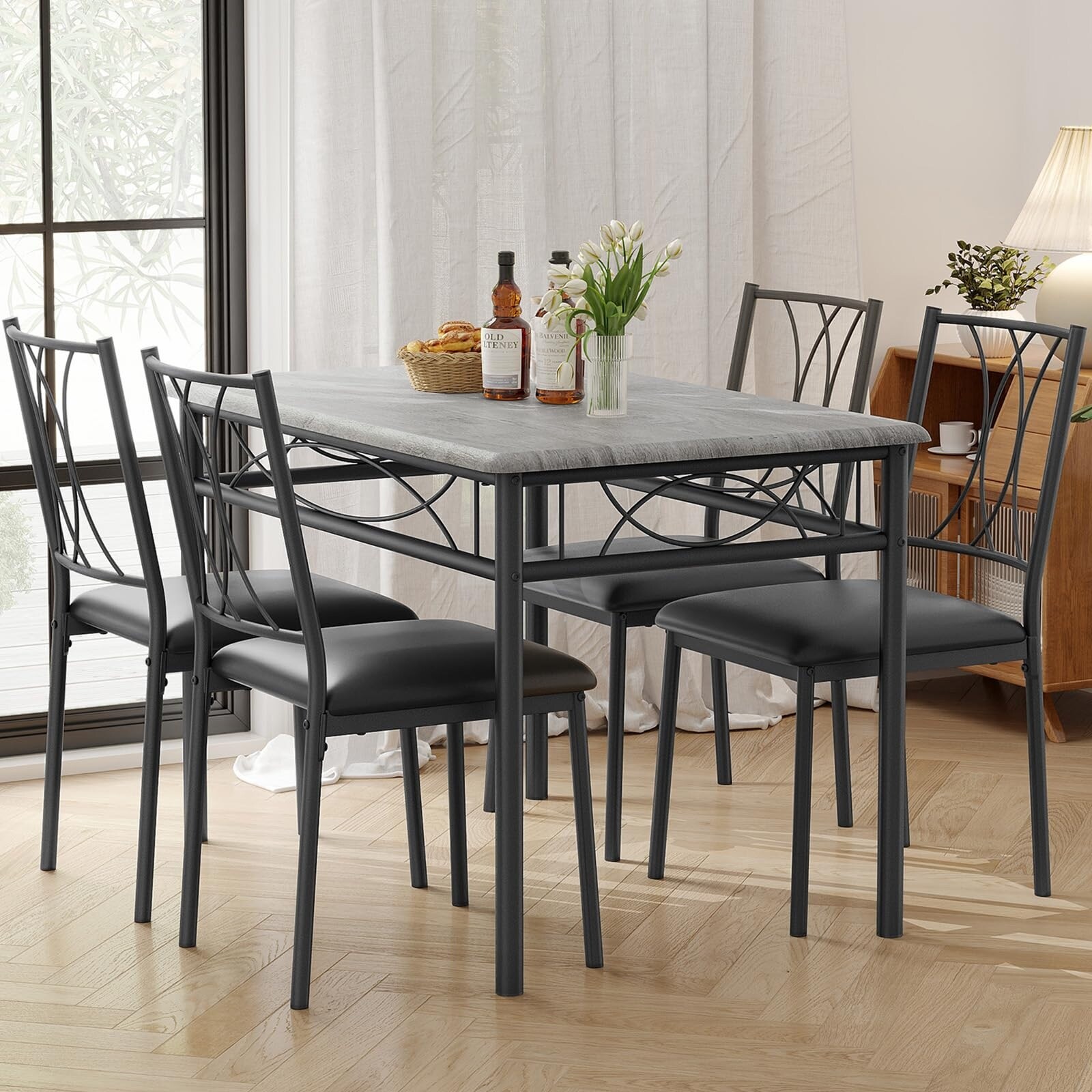 Marble Dining Table with 4 Upholstered Dining Chairs, Set of 5