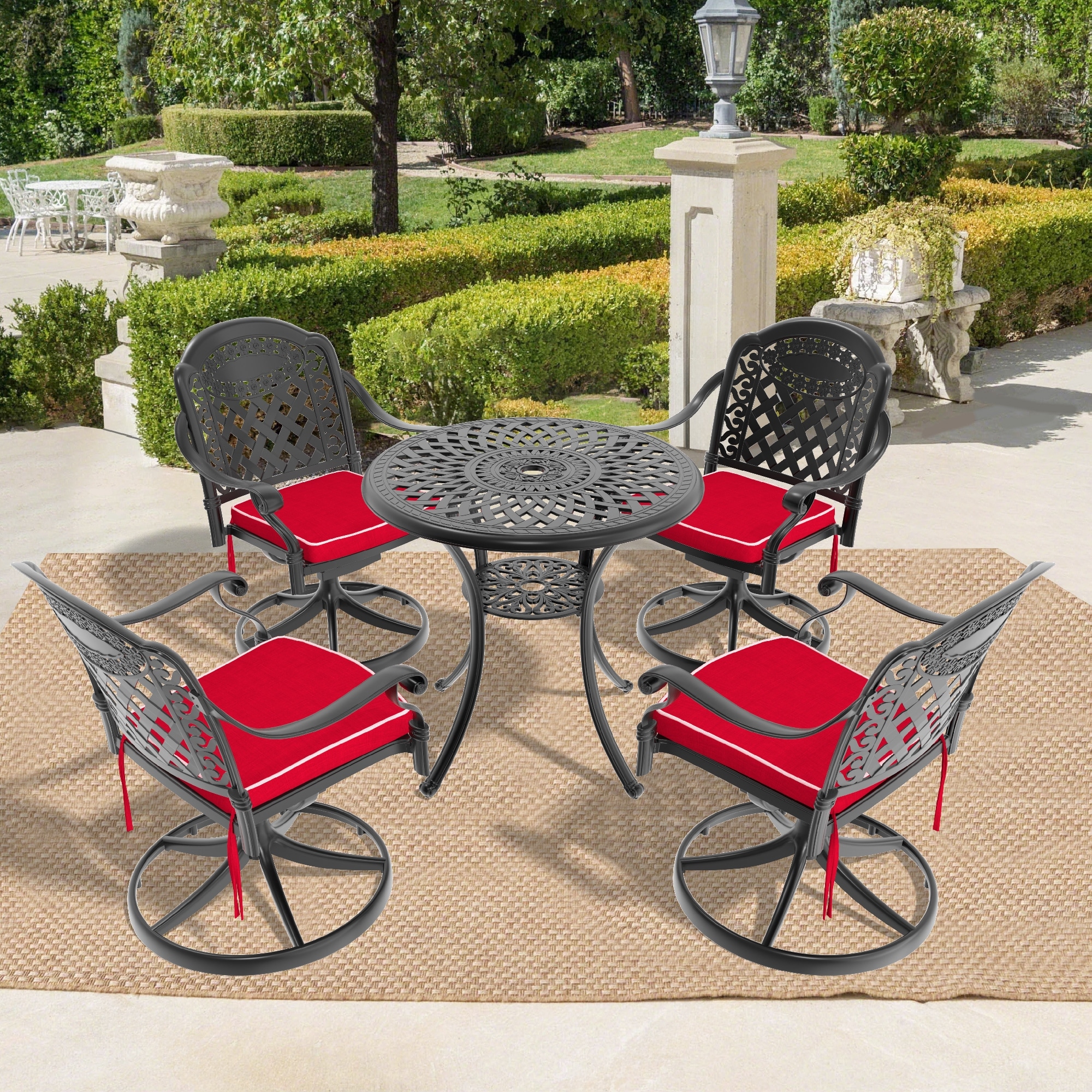 5 Pcs Outdoor Patio Dining Set, All Weather Patio Funiture Set with 4 Swivel Chairs, Round Table with Umbrella Hole