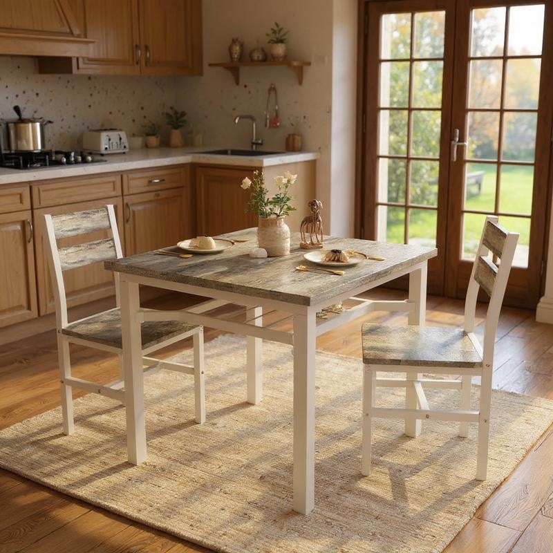 5-Piece Farmhouse Dining Set with Plank Effect Tabletop and Schoolhouse Chairs, Perfect for Gatherings and Family Meals