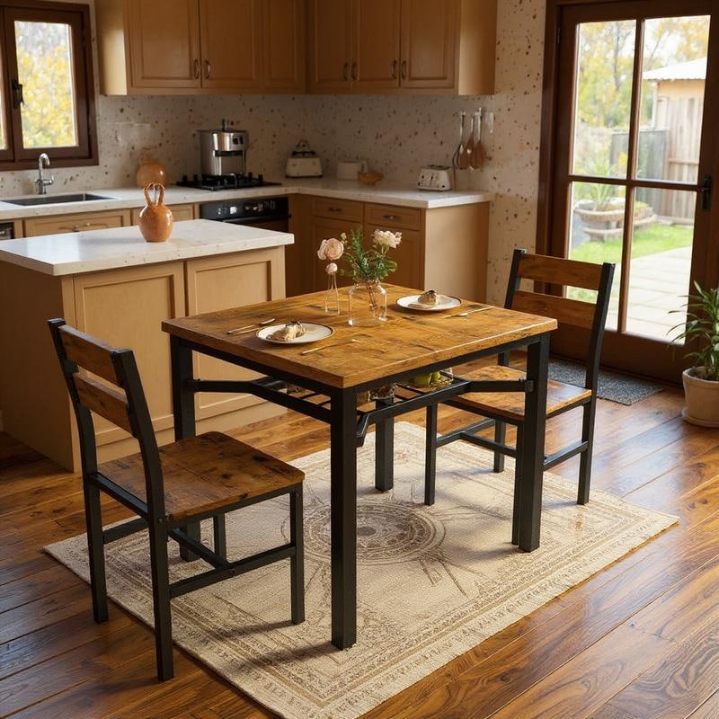 Eureka Industrial 3-piece Dining Set, Modern Kitchen Dining Table with Two Benches for Home, Kitchen, Dining Room, Bar