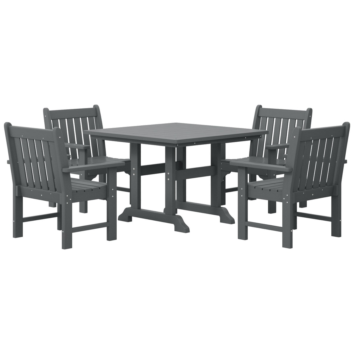 Laguna Poly 5-Piece Outdoor Patio Square Table Garden Arm Chairs Dining Set