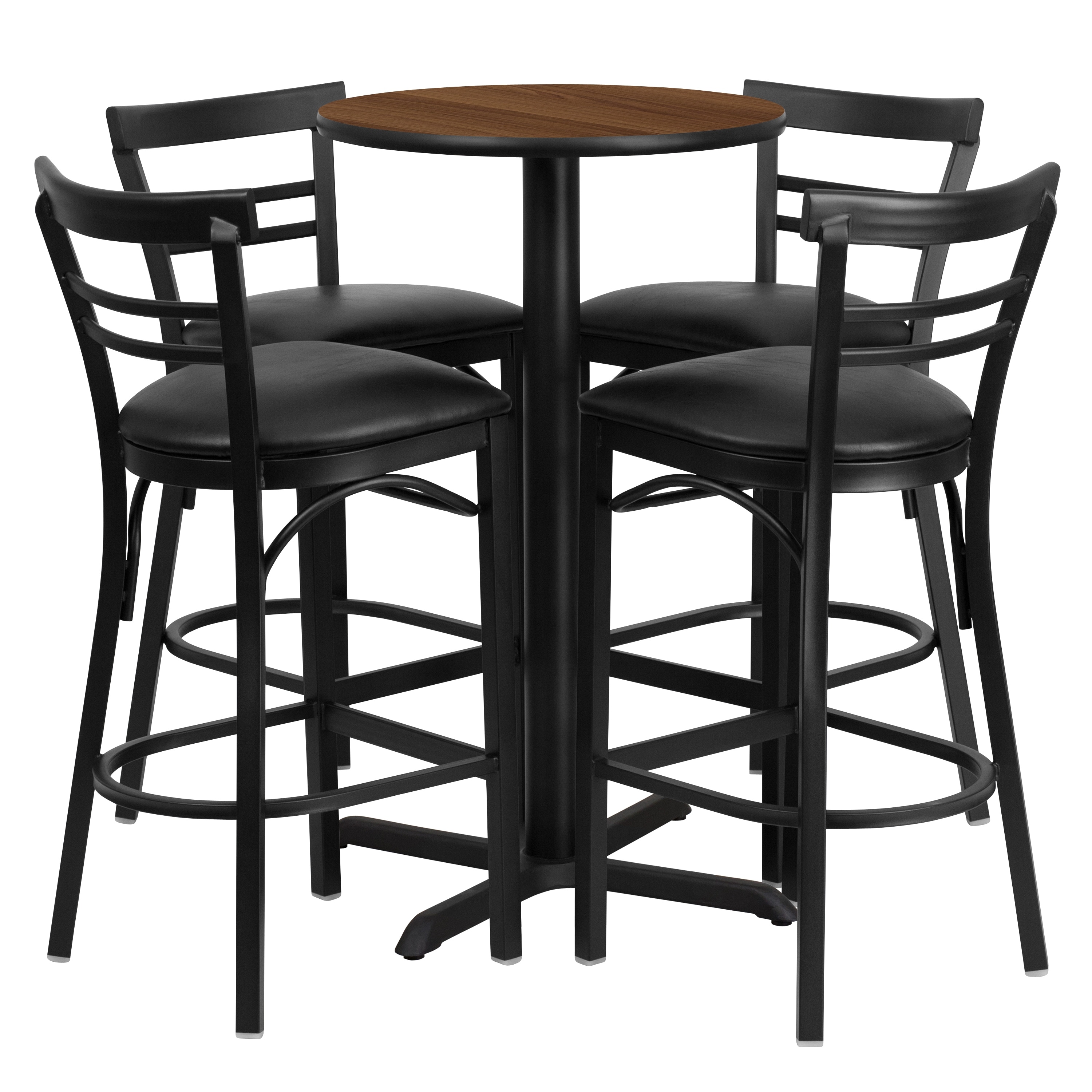 24'' Round Laminate Table Set with X-Base and 4 Ladder Back Metal Barstools