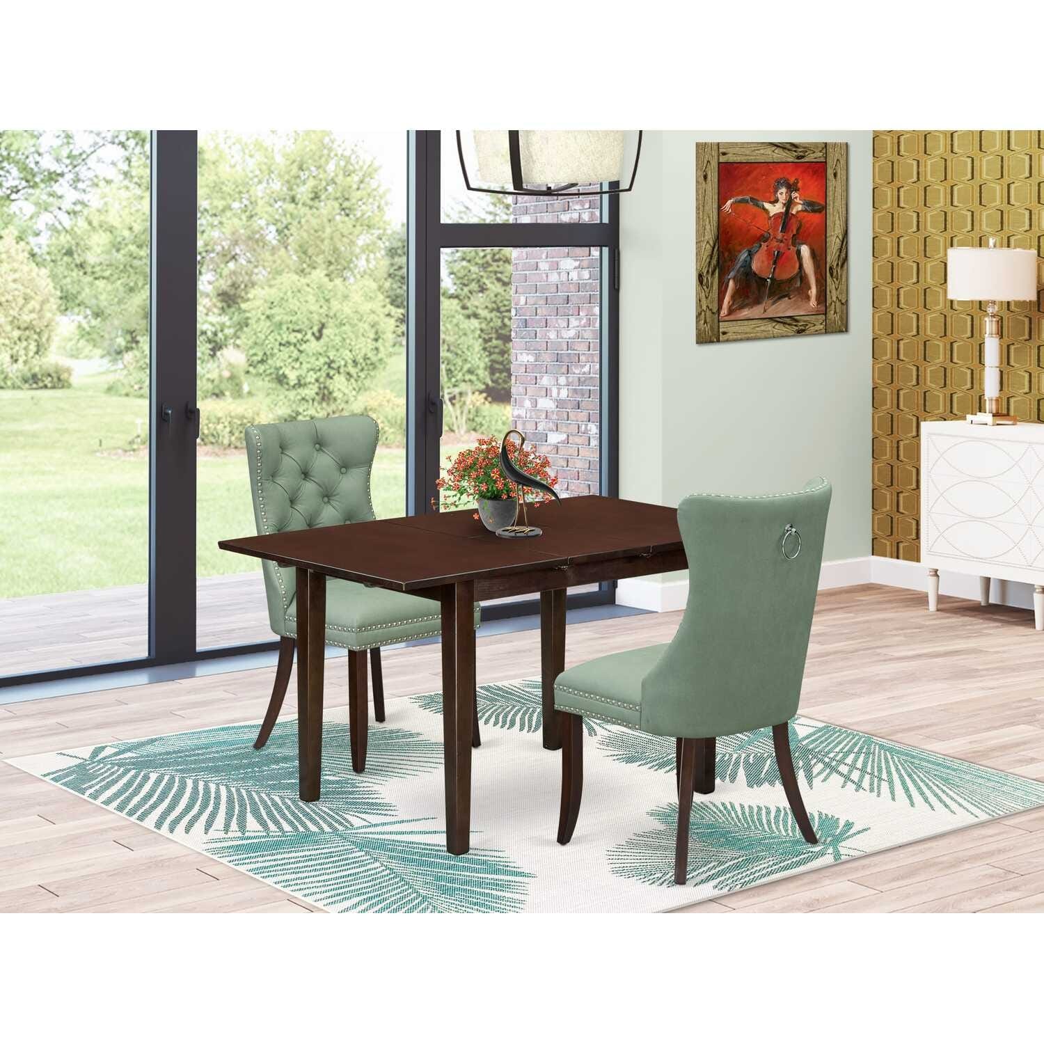 HomeStock 3-Pc Mahogany Finish Rectangular Solid Wood Top with Butterfly Leaf Dining Table Set