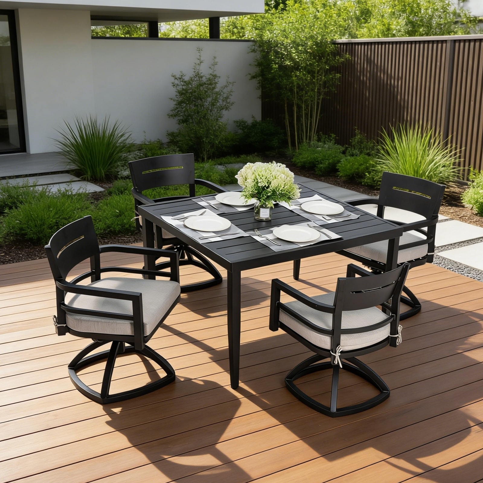 5-Piece Outdoor Aluminum Square Dining Set with 4 Swivel Rockers, Sunbrella Fabric
