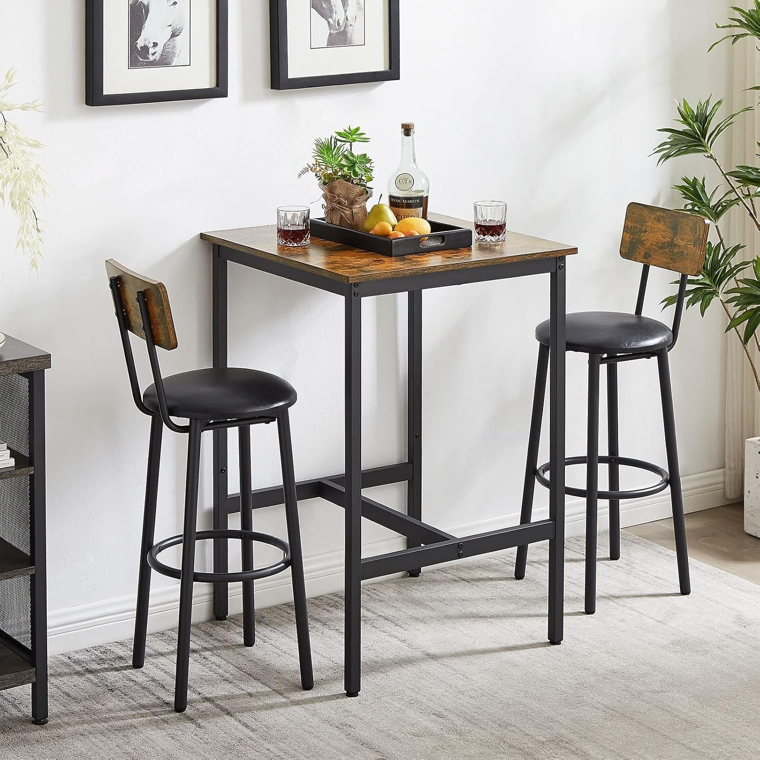 3-Piece Small Bar Table and Chairs Set with Square Table and PU Stools for Home & Kitchen Dining Room