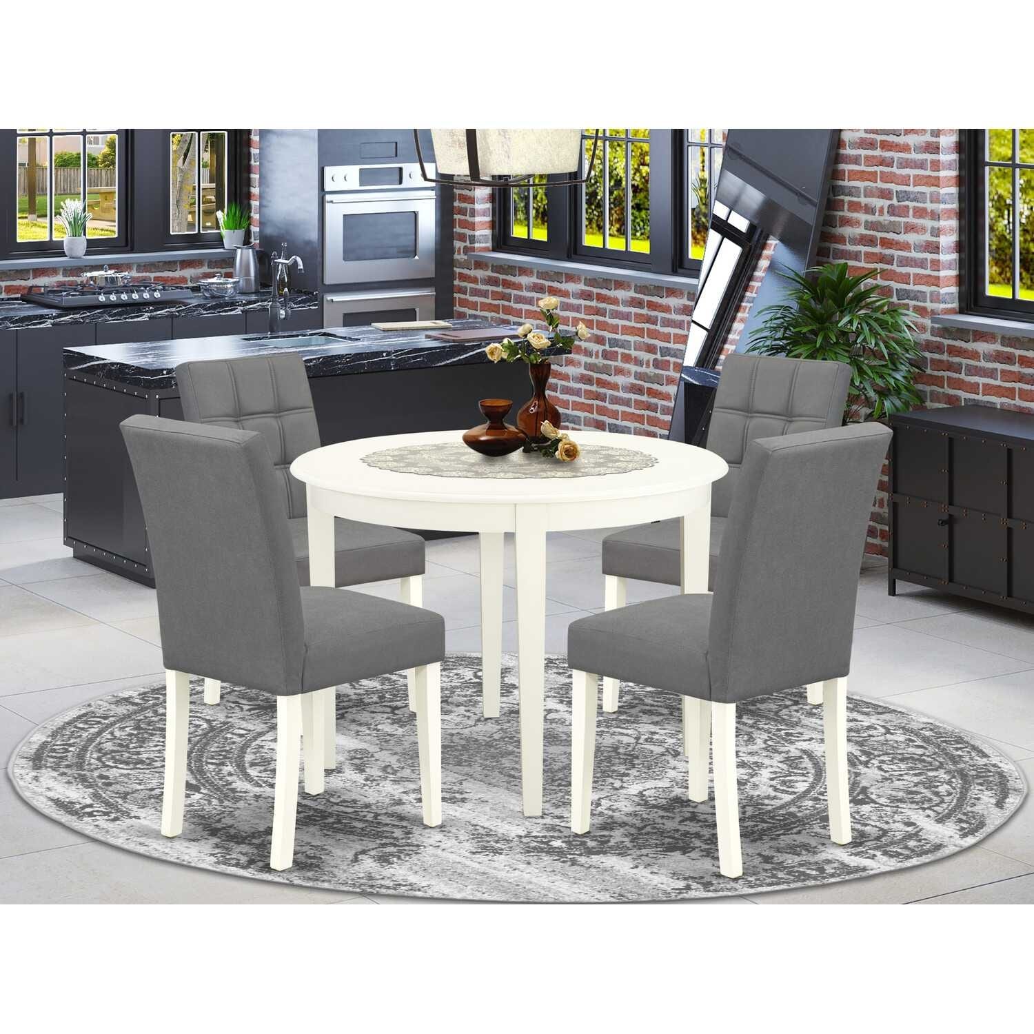 HomeStock 5-Piece Linen White Solid Wood Top - Round Dining Room Set - Seats 4