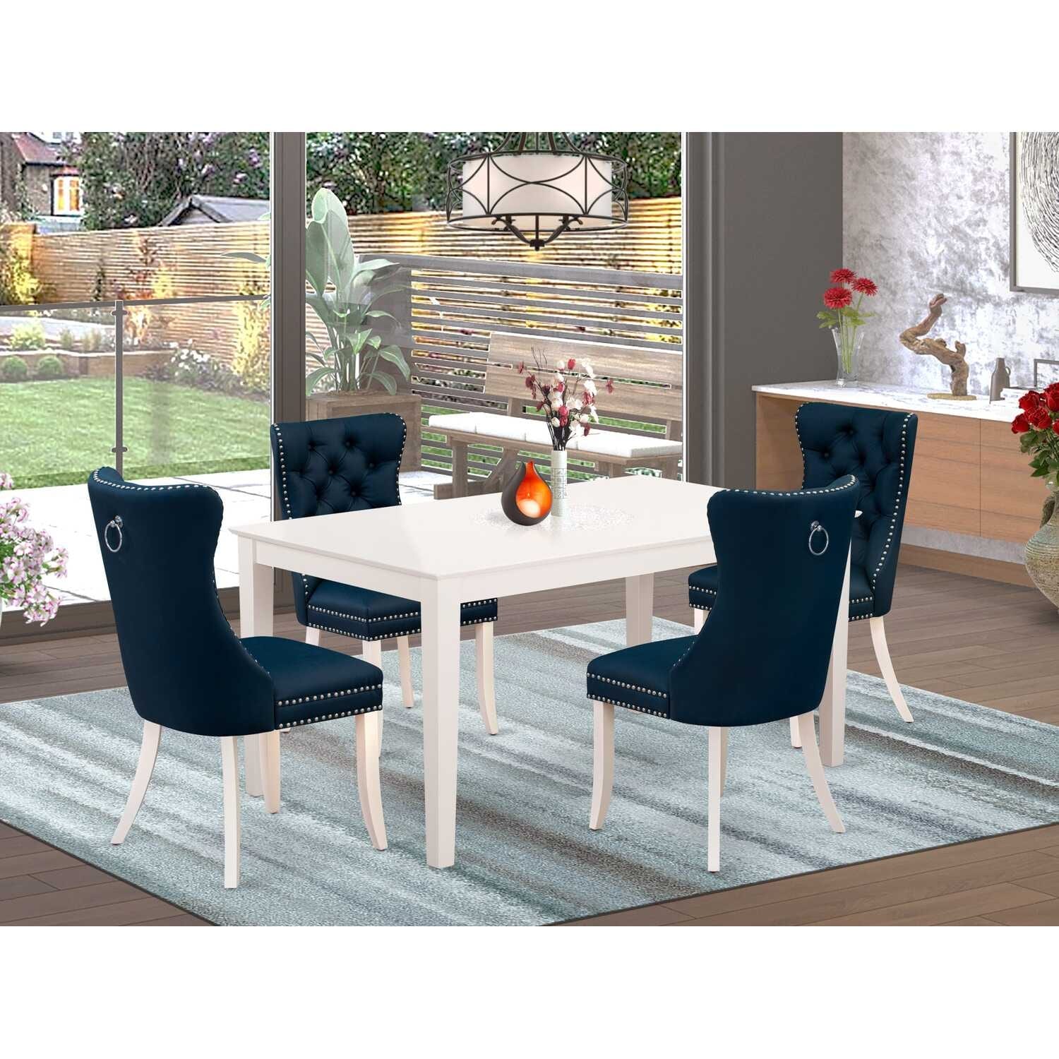 5-Piece Rectangular Linen White Finish Solid Wood Top-Upholstered Dining Room Set-Seats 4