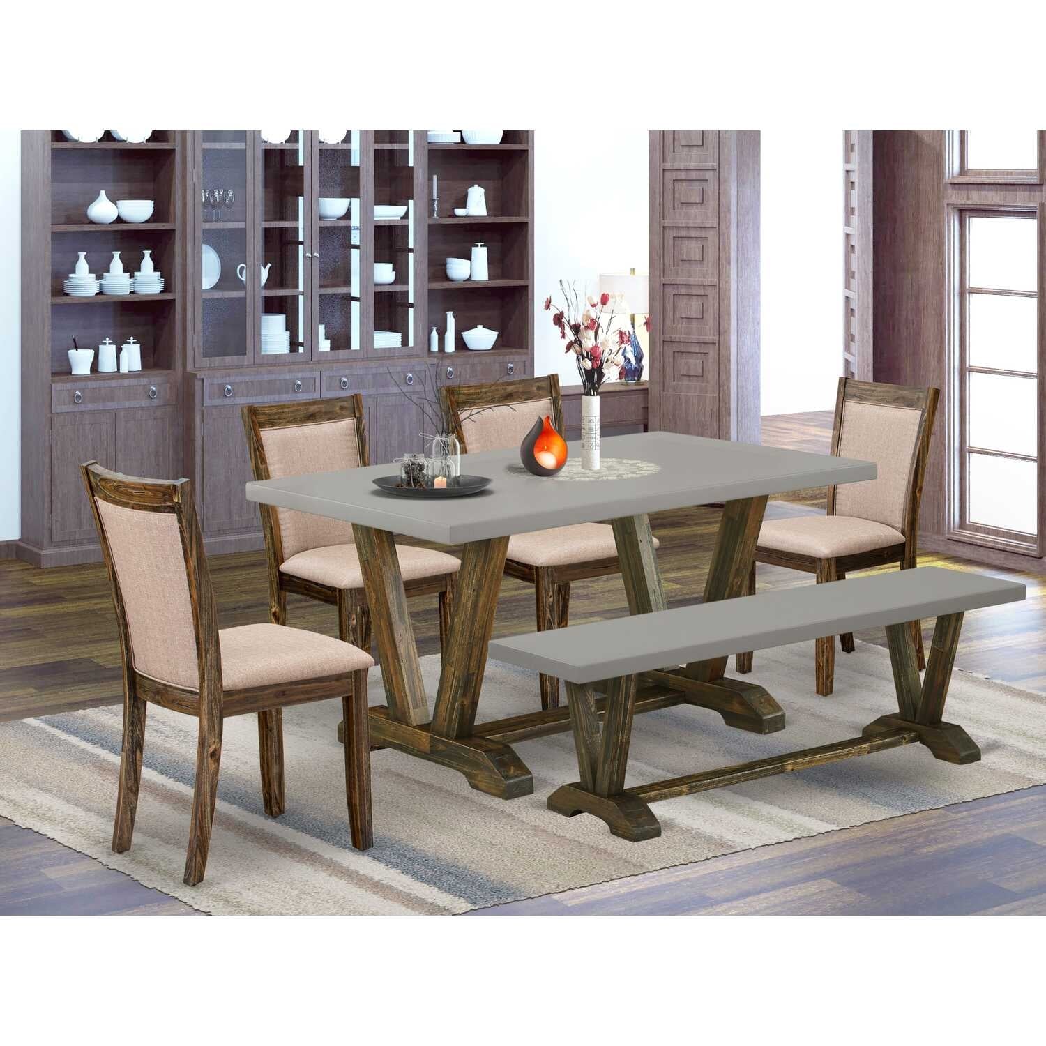 HomeStock 6-Piece Rectangle Distressed Jacobean Finish Solid Wood Top Dining Table with 1-Bench, 4-Chairs