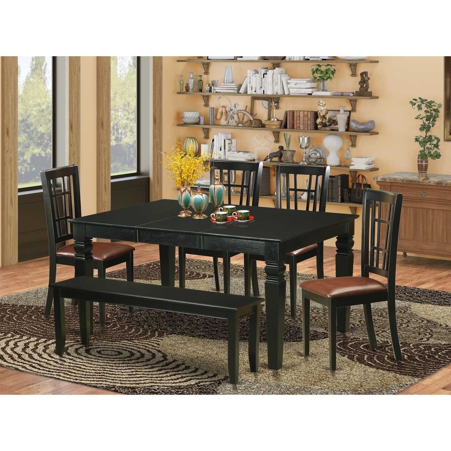 HomeStock 6-Piece Rectangle Black Finish Solid Wood Top dining Table with 1 Bench and 4 Chairs