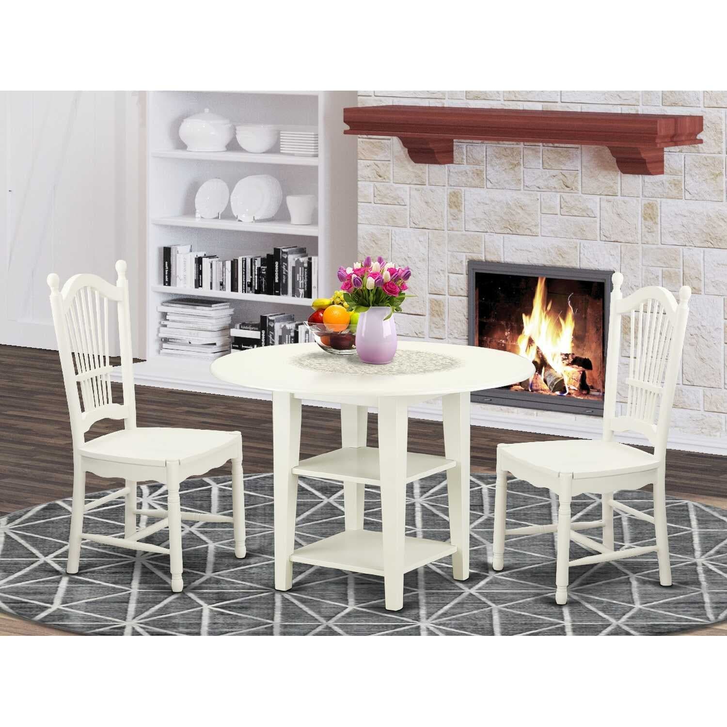 HomeStock 3-Piece Linen White Finish Solid Wood Top Dining Table Set