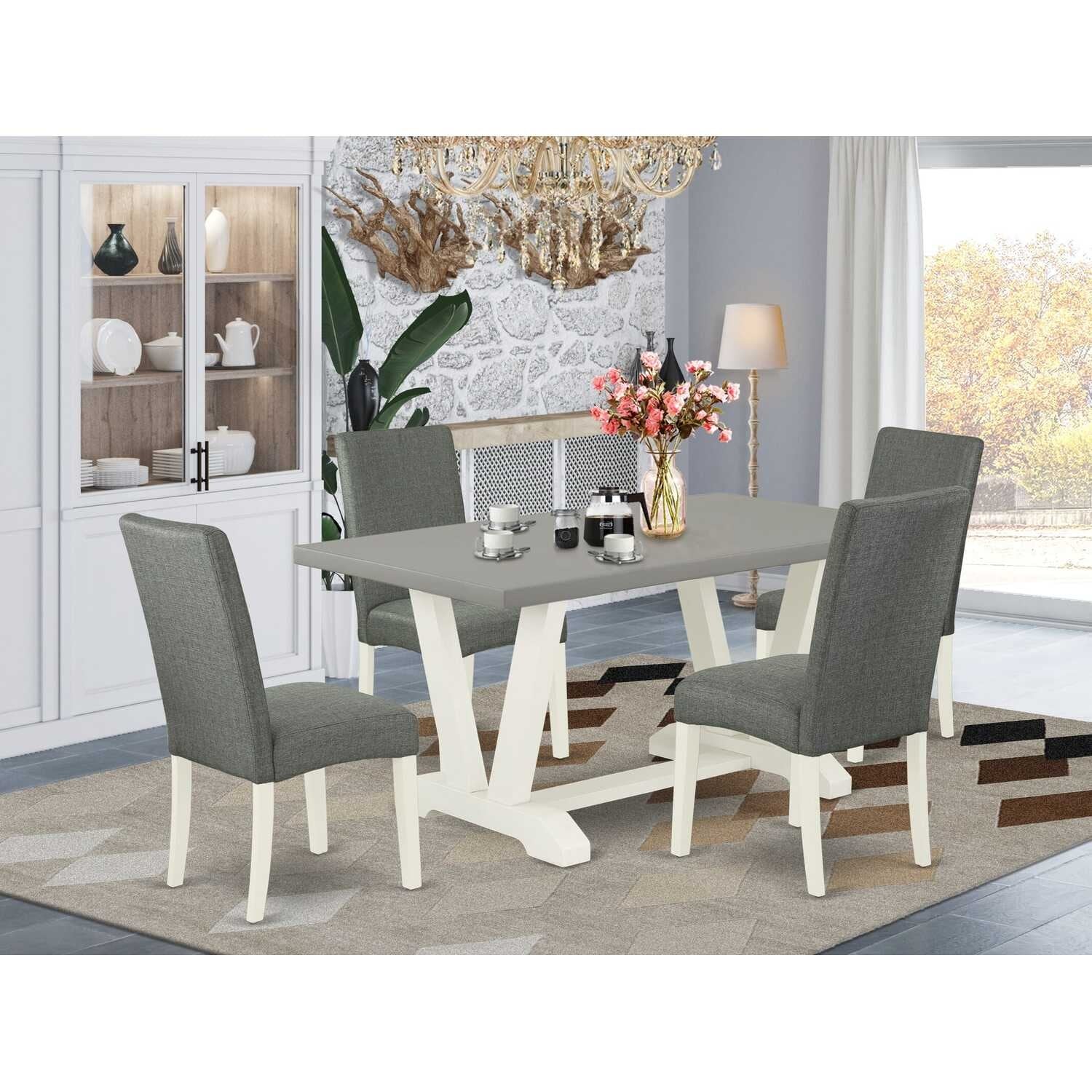 5-Piece Linen White Finish Solid Wood Top - Dining Room Set - Seats-4