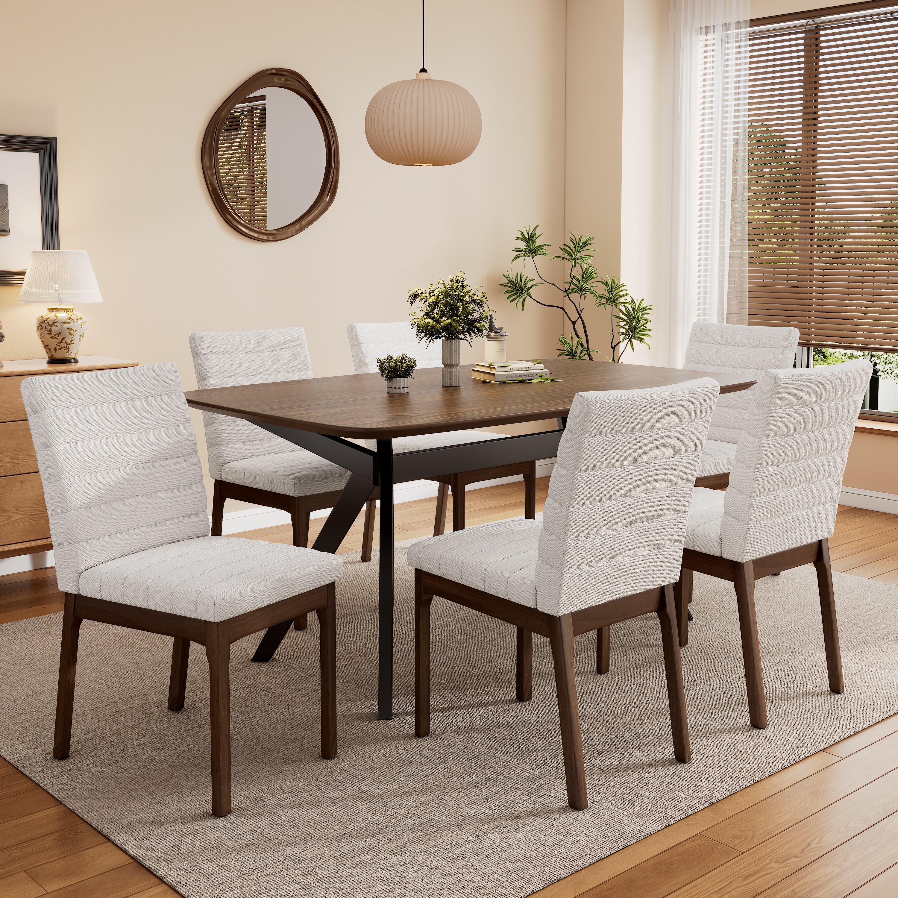 HomeStock 7-Piece Rectangle Natural Oak Finish Solid Wood Top Dining Table with 6-Parson Chairs