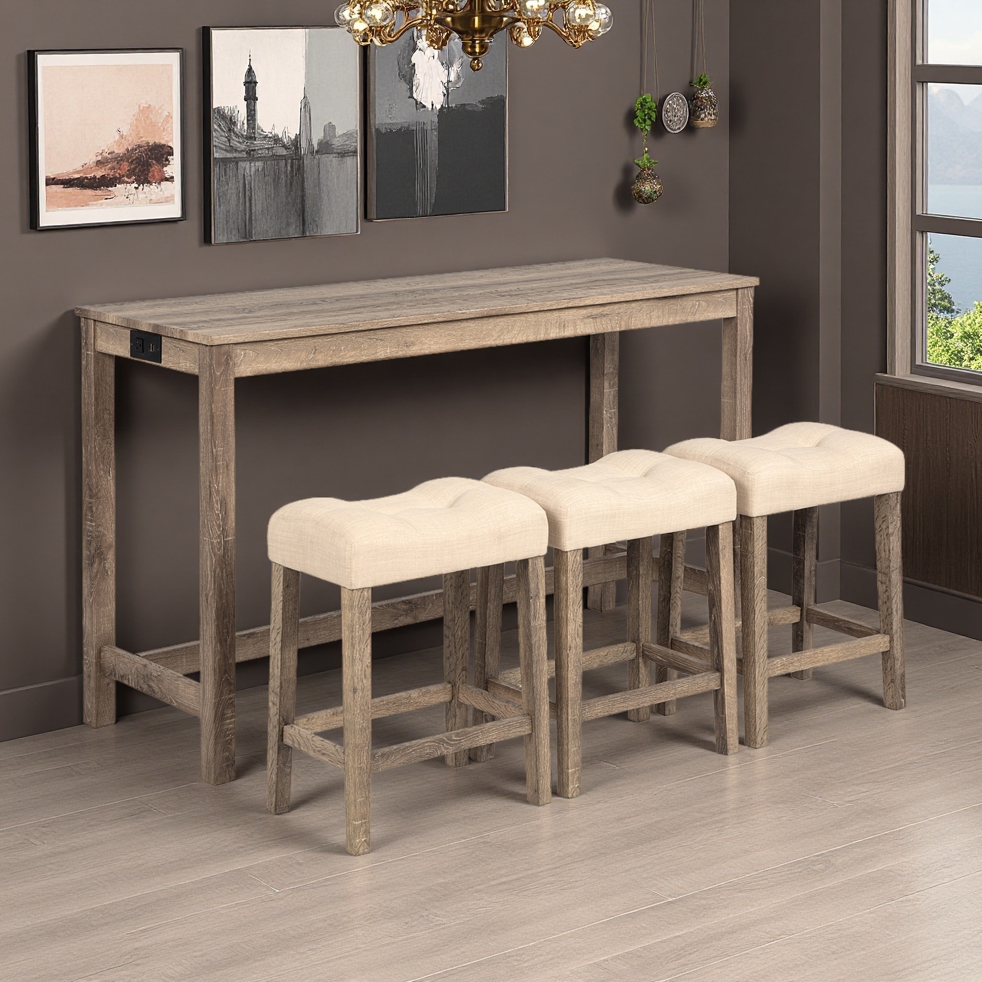 4-Piece Bar Table Set with Power Outlet & 3 Stools