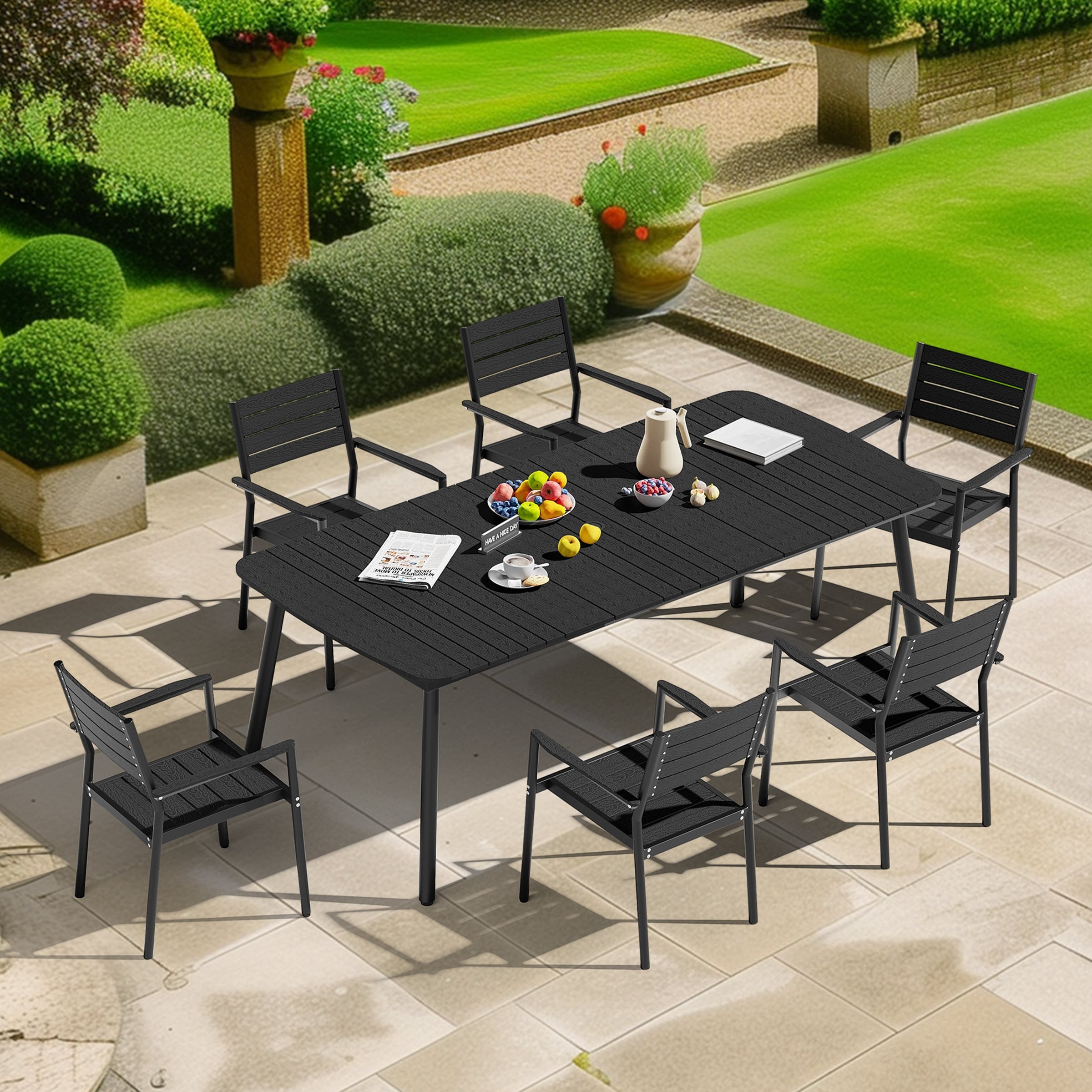 7-Piece Patio Dining Table Set Rectangular Aluminum Outdoor Table with Umbrella Hole Stackable Chairs