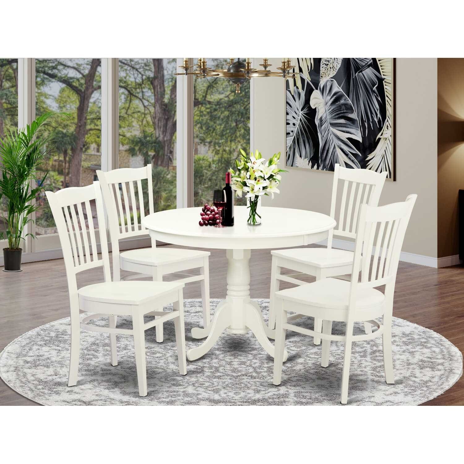HomeStock 5-Pc Round Linen White Finish Solid Wood Top Dining table with 4 Chairs