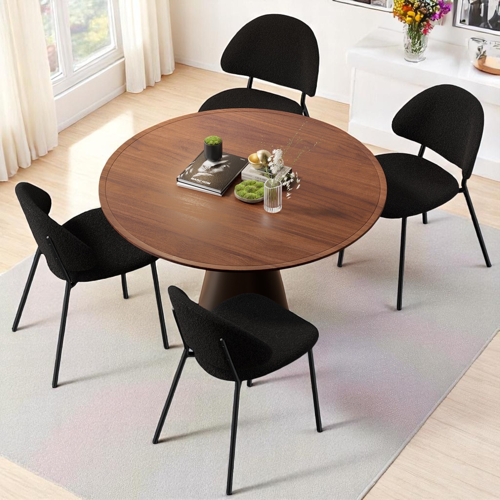 Set of 4 Upholstered Dining Chairs, Mid-Century Modern PU Leather Boucle Chairs with Curved Open Back for Dining Room, Kitchen
