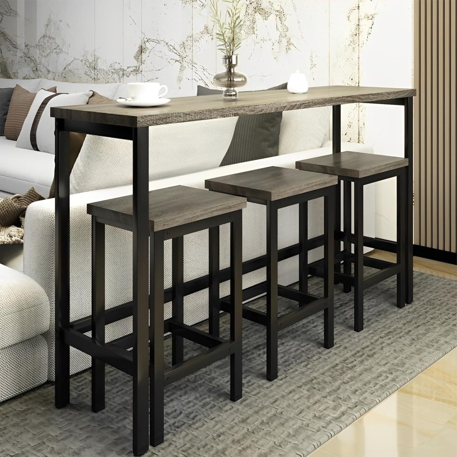 4-Piece Counter Height Dining Table Set with 3 Stools and Side Table, Space-Saving Pub Kitchen Set, Gray