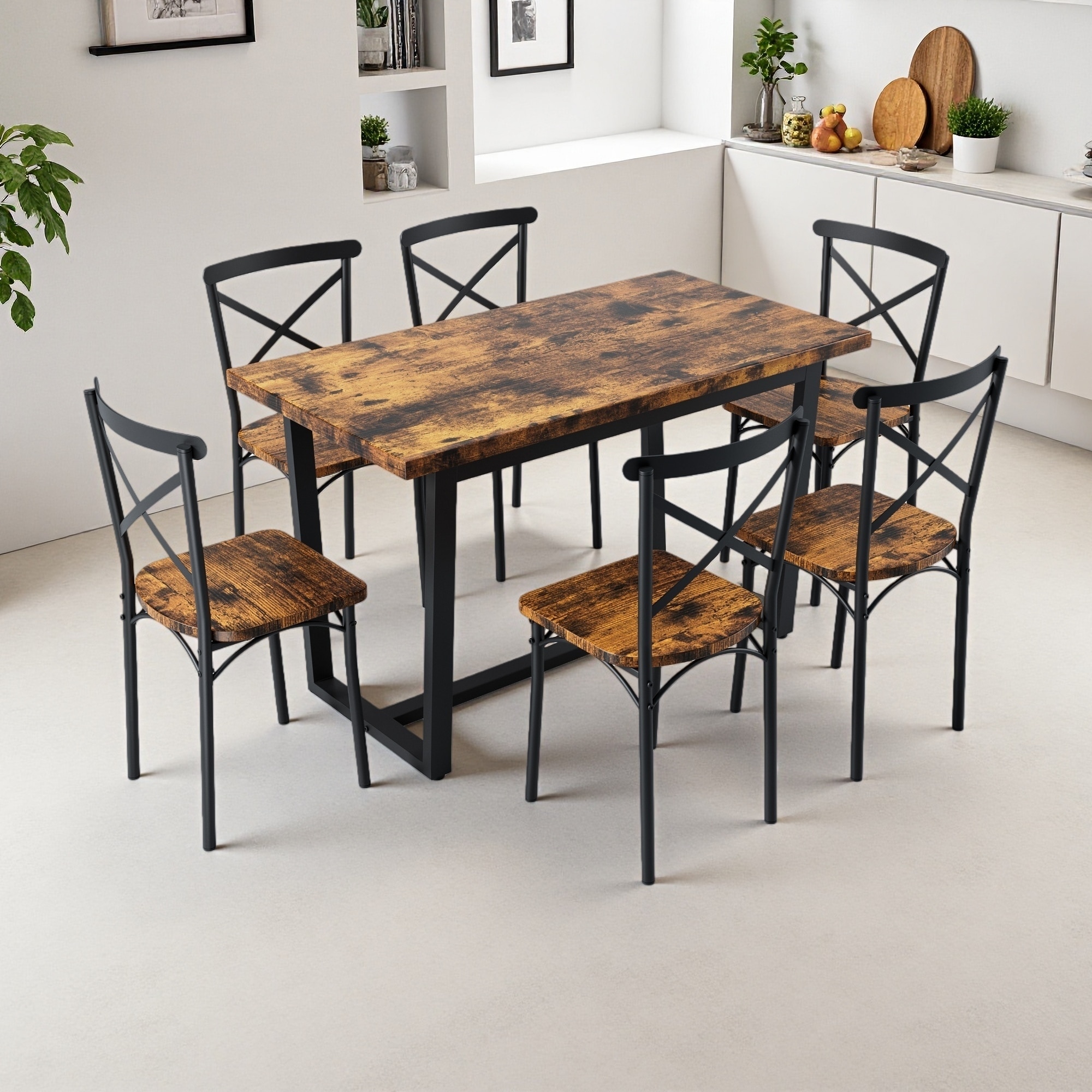 7-Piece 52" MDF & Metal Dining Set with 4 Chairs, Industrial, Space-Saving