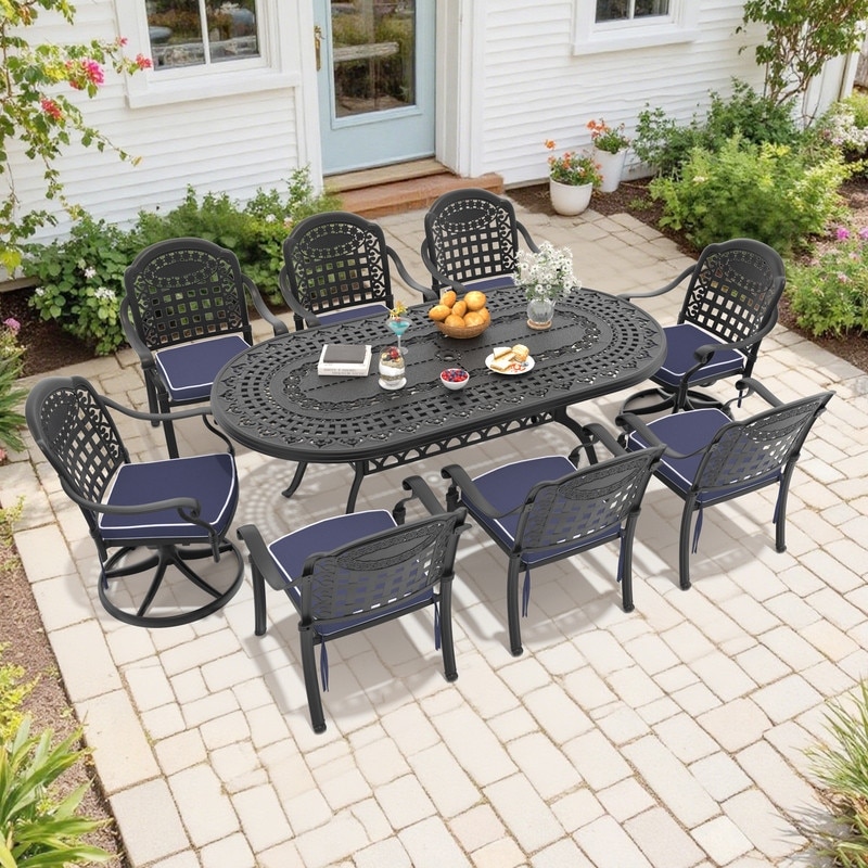 9-Piece Outdoor Dining Set with 1 Table and 8 Chairs, All-Weather Aluminum Outdoor Patio Sets