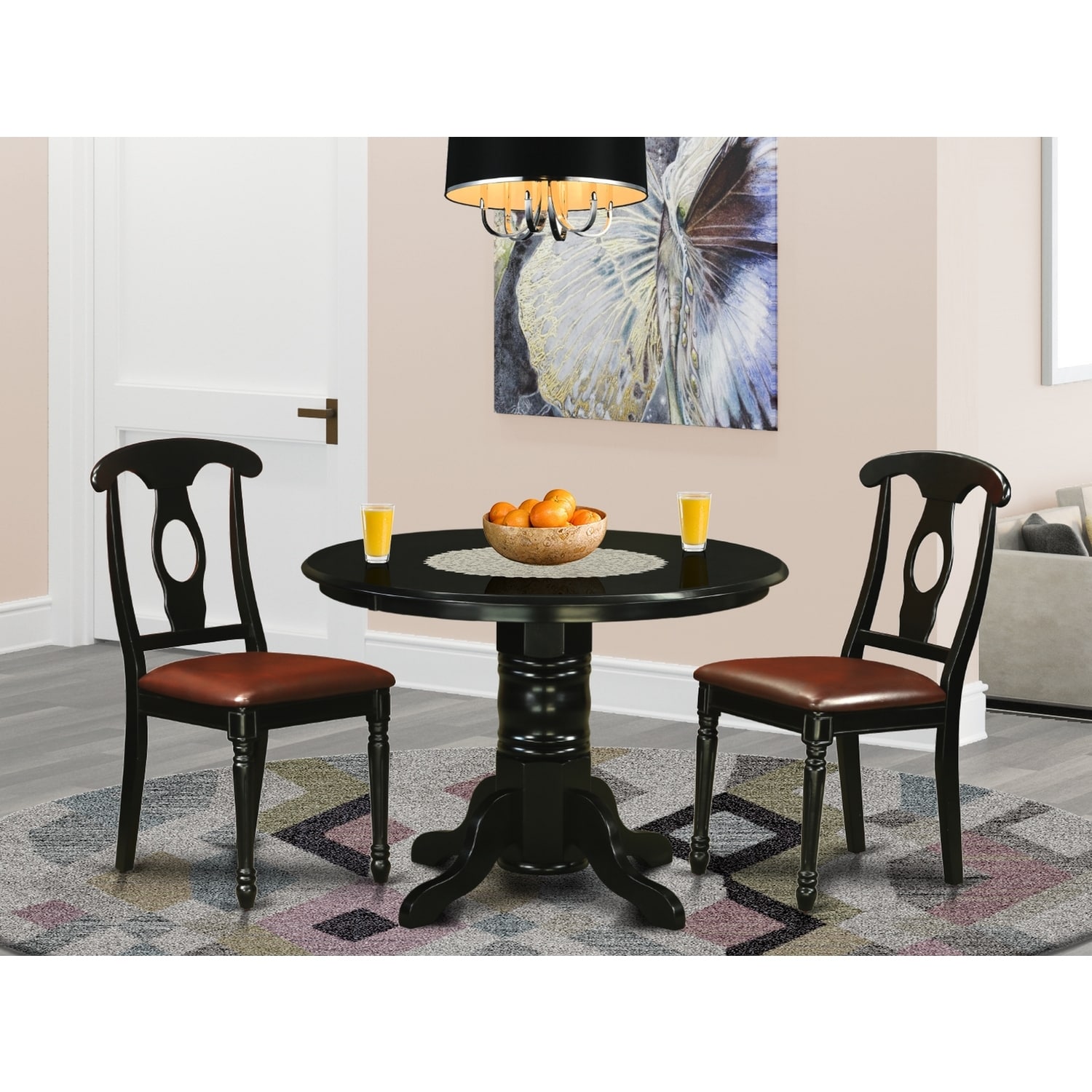 HomeStock 3-Piece Round Black Finish Solid Wood Top Dining Table with 2 Chairs