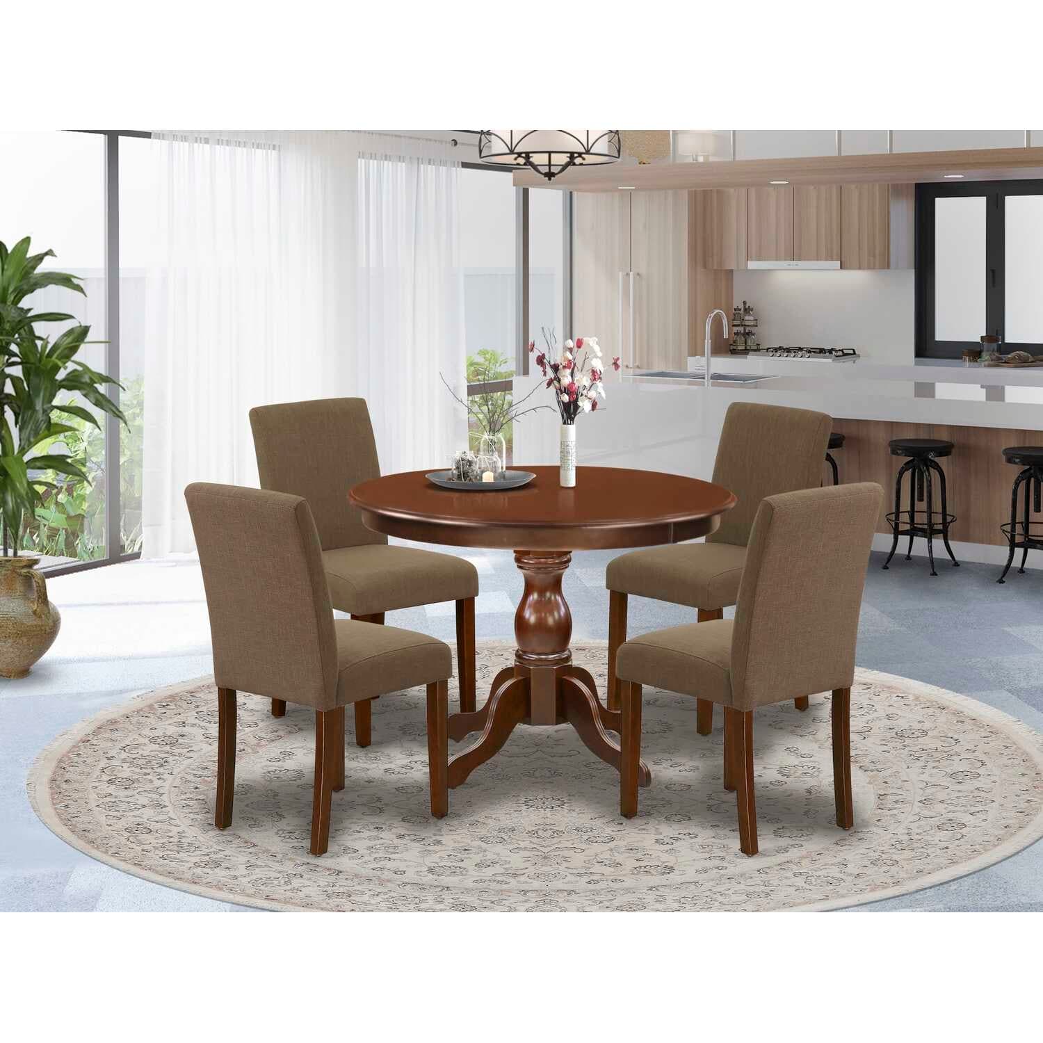 HomeStock 5-Pc Mahogany Finish Solid Wood Top Dining table with 4 Chairs
