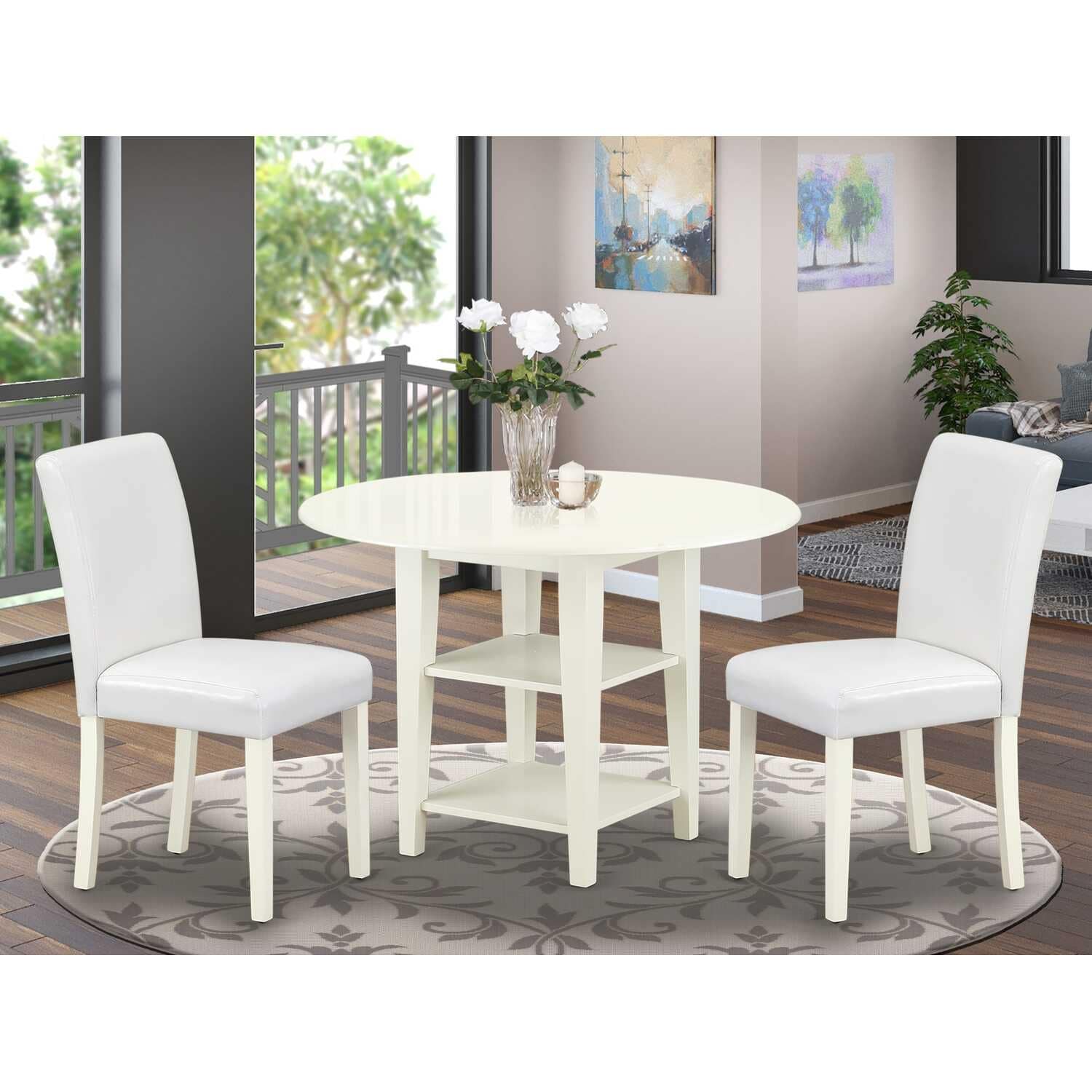 Modern Dining Set 3pc - Round Table & 2 Parsons Chairs - 42 Inch - City Chic Design