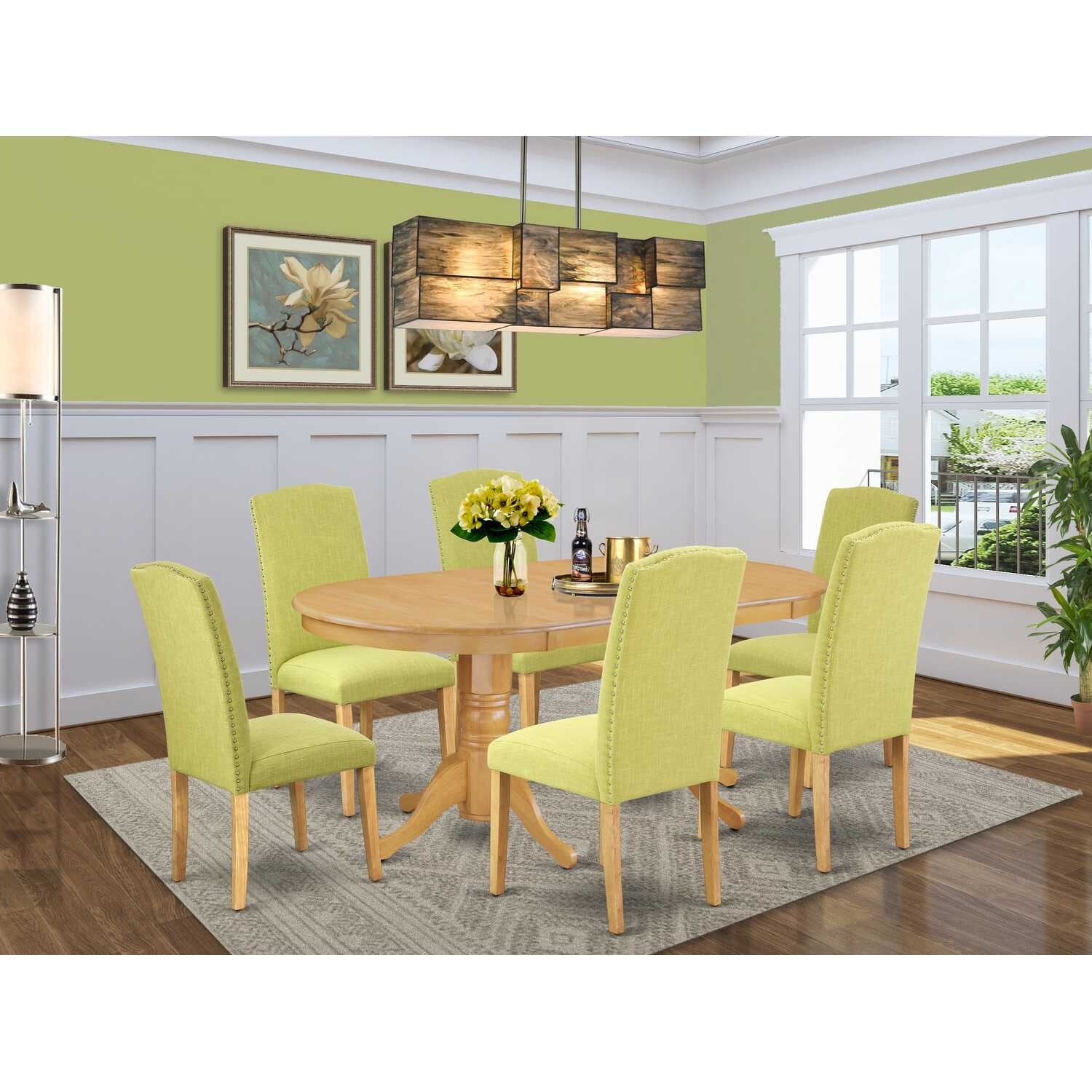 Dining Room Set 7Pc Table & Chairs - Modern Linen Fabric Dining Set with Butterfly Leaf