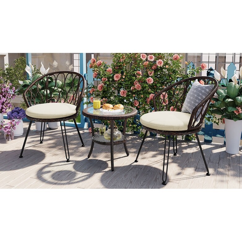 3-Piece Linen white Solid Wood Top-Round Upholstered Dining Room Set -Seats 4