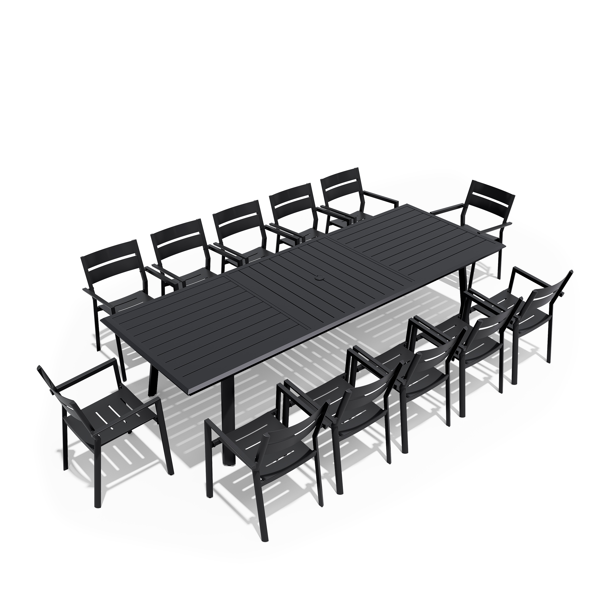 7/9/11/13-Piece Set Outdoor Aluminum Dining Table with Umbrella Hole and Stackable Chairs
