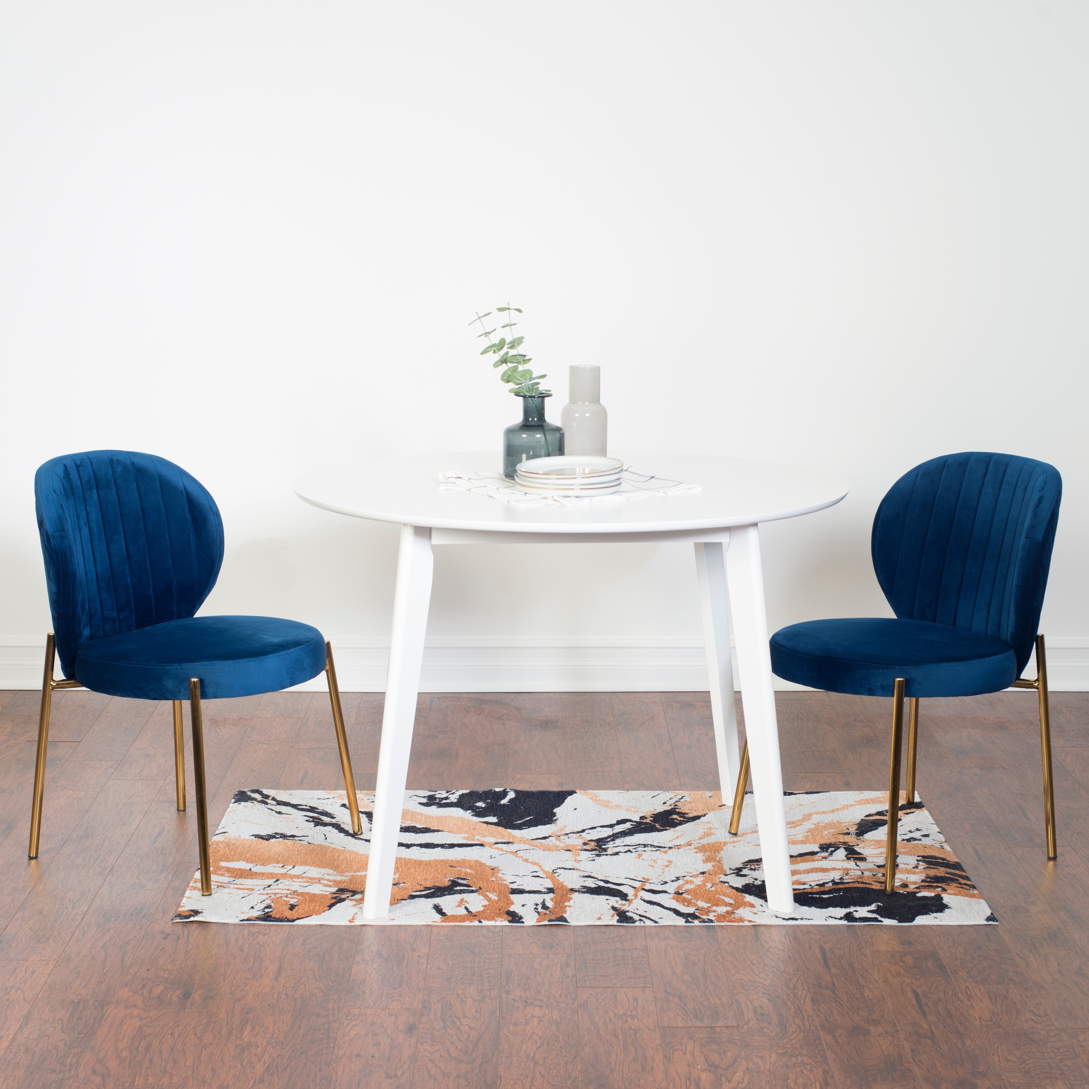 2 Blue Upholstered Chairs and Round Kitchen Table for Kitchen