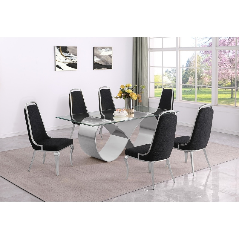 MAISON ARTS 7-Piece Patio Dining Set with Metal U-Shaped Leg Brown Dining Table and Metal Dining Chairs