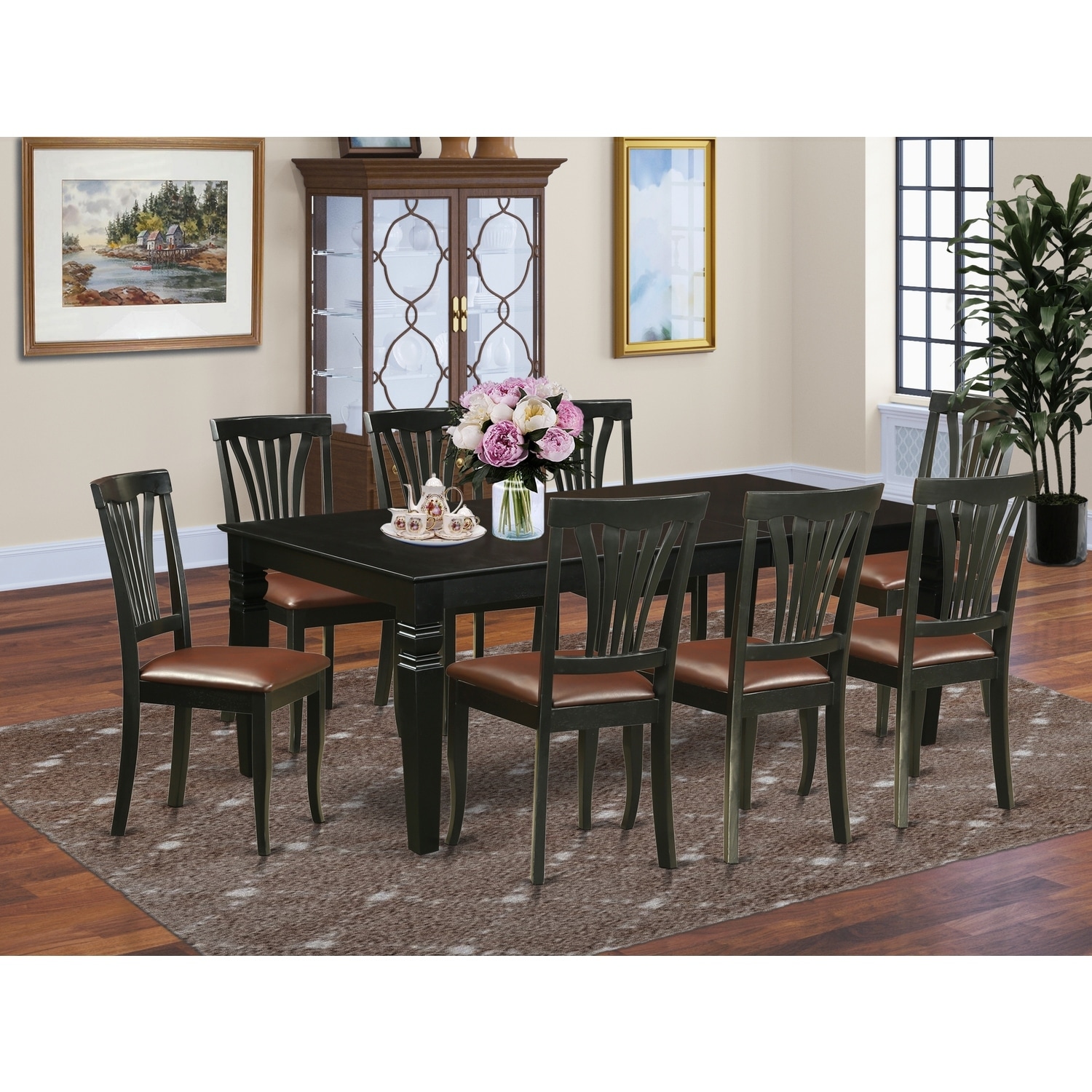 Dining Room Set 9 Piece Table with Chairs - Rectangle Kitchen Table & Faux Leather Seats - Modern Dining Furniture